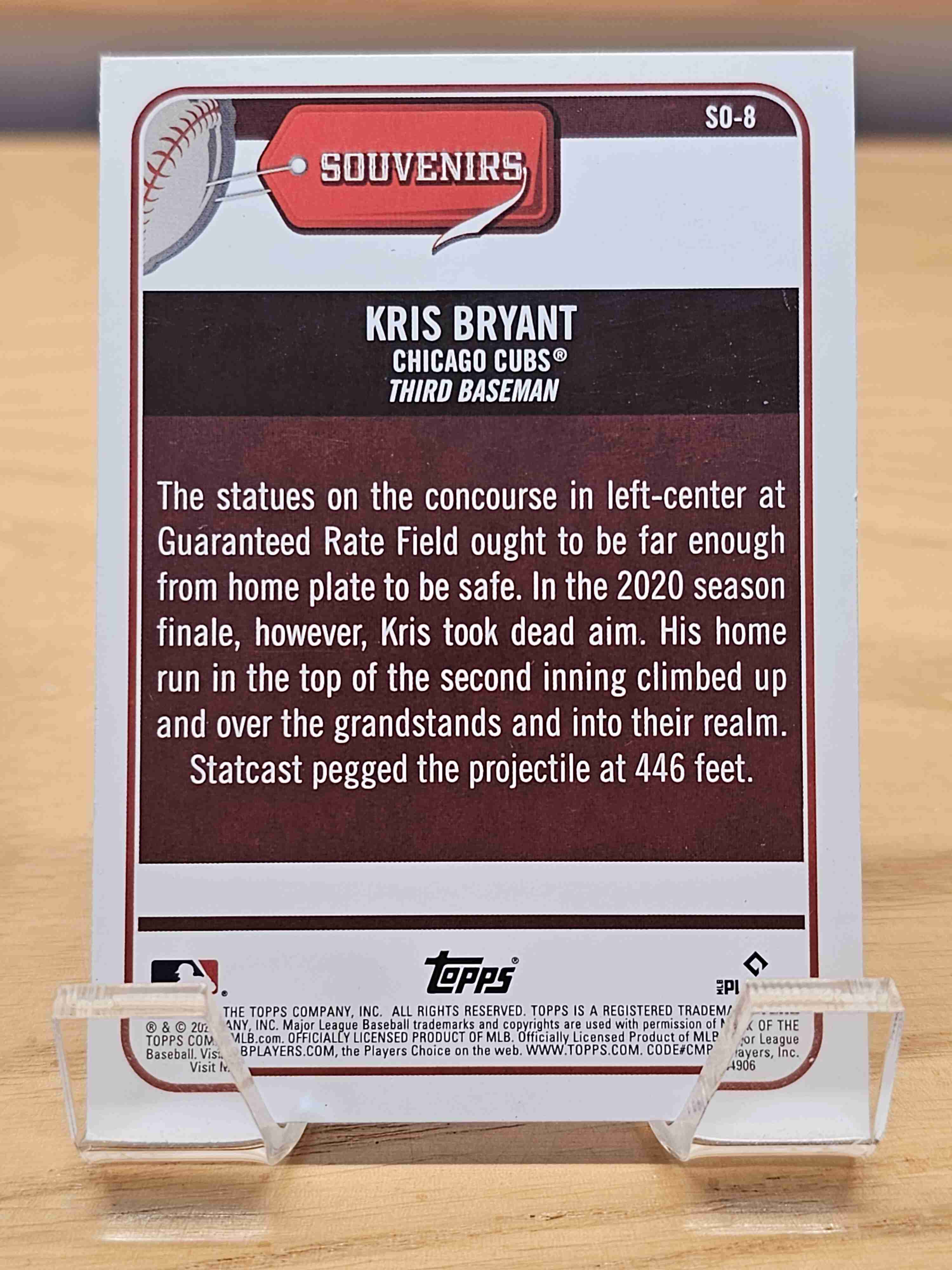 2021 Topps Big League Baseball Souvenirs Kris Bryant Chicago Cubs Card #SO-8