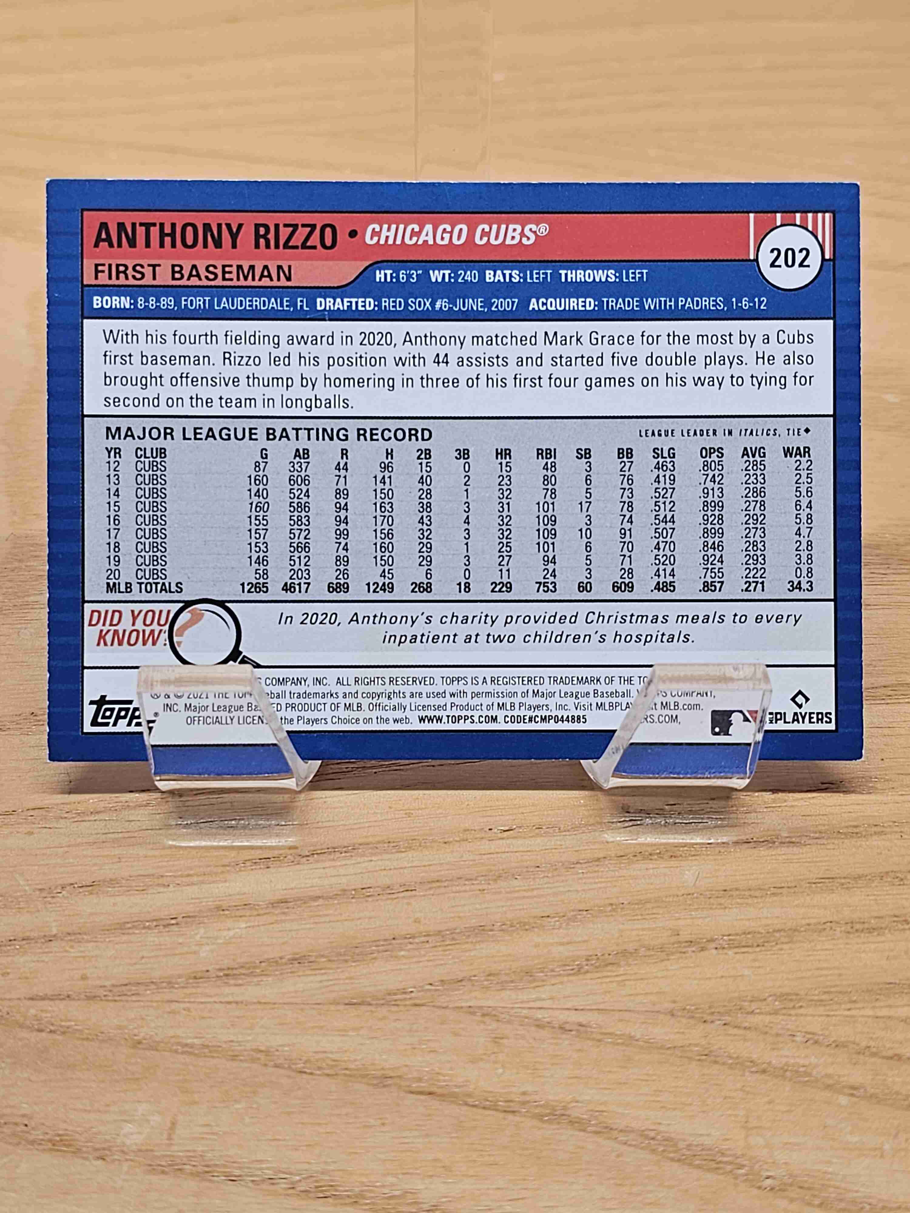 2021 Topps Big League Baseball Anthony Rizzo Chicago Cubs Card #202