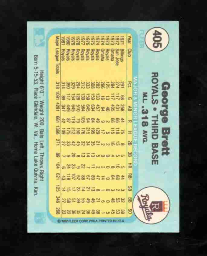 1982 Fleer # 405 GEORGE BRETT Royals NM/M