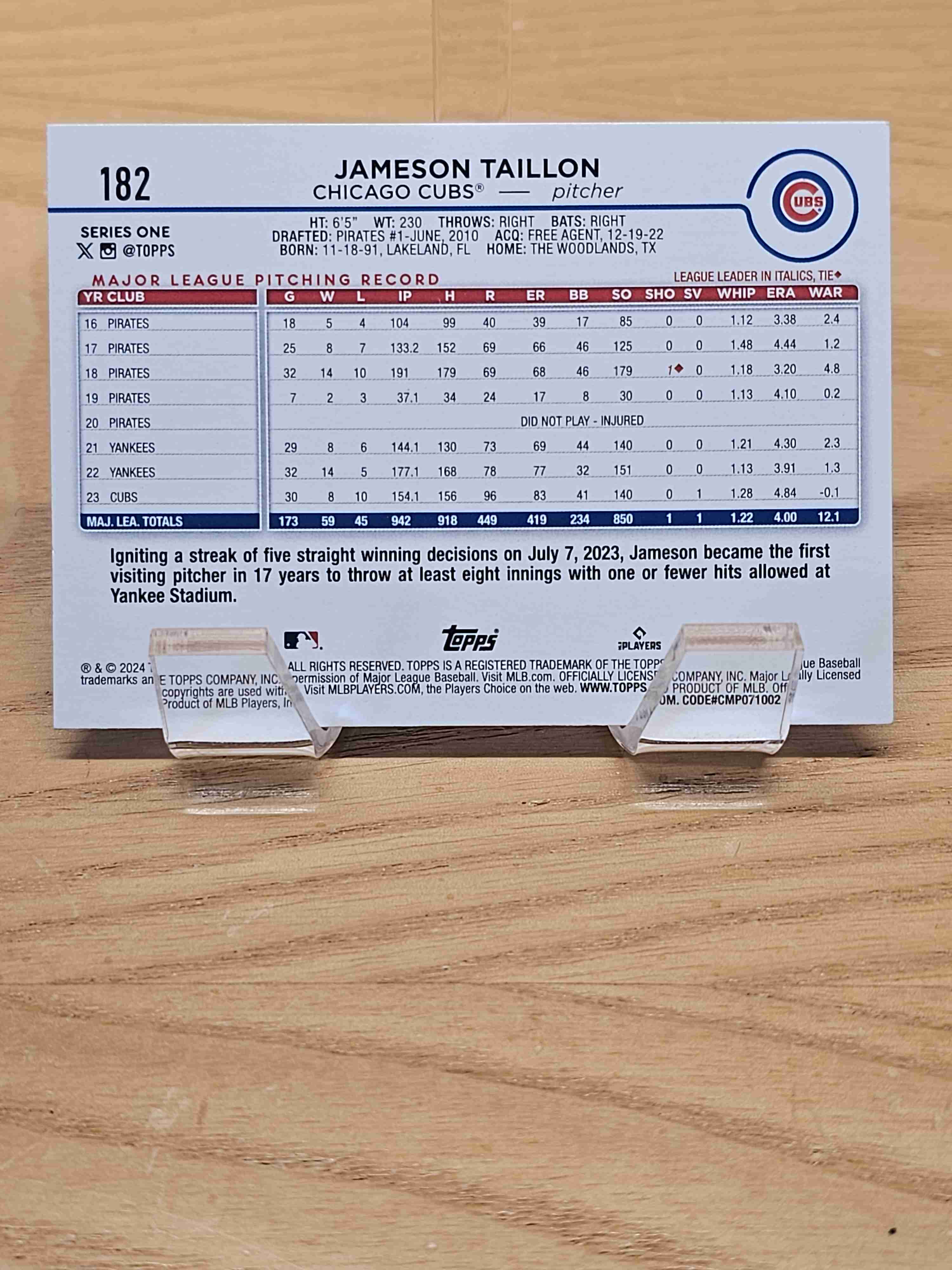 2024 Topps Series One Jameson Taillon Chicago Cubs #182