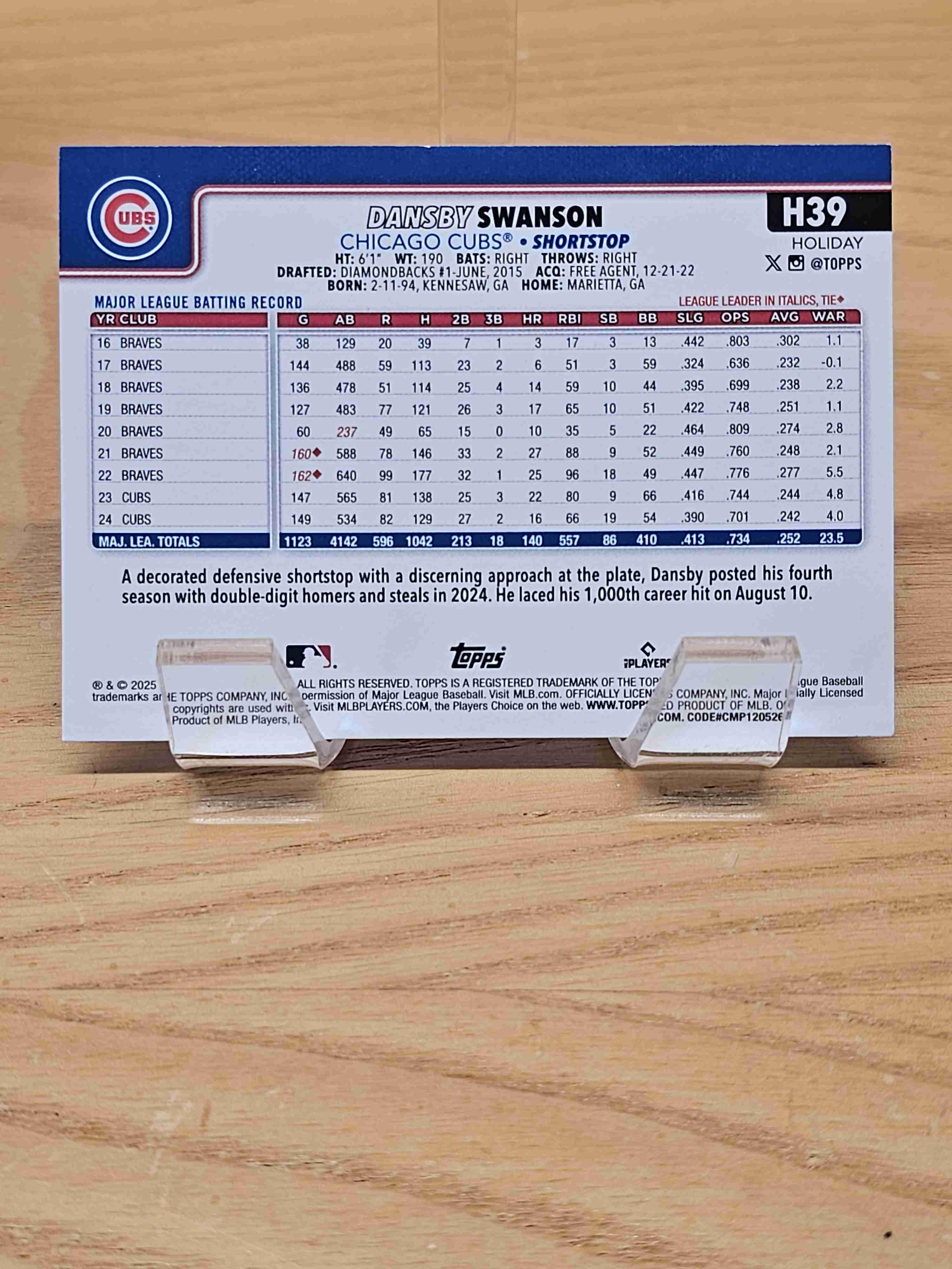 2025 Topps Holiday Baseball Dansby Swanson Chicago Cubs Card #H39