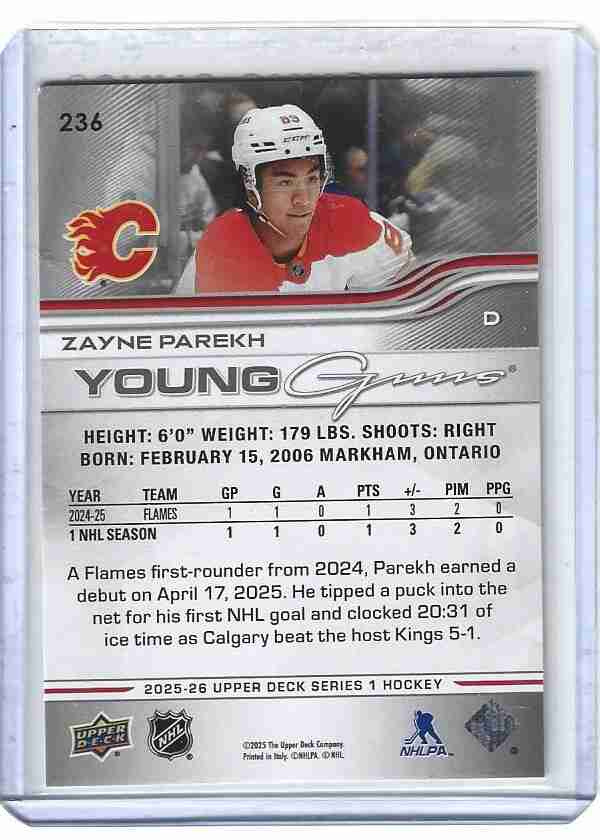 2025/26 UD 1 #236 ZAYNE PAREKH YOUNG GUNS