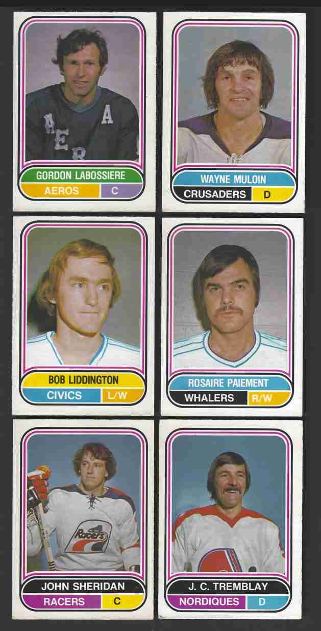 1975-76 O-Pee-Chee WHL Hockey Lot (12) -Higher Grade-. No's-4,6,51,54,55,64, 89,102,105,106,107,130. Excellent lot of scarce 1975-76 OPC WHL Hockey cards. This is a higher-grade lot. Cards have minor flaws - bright color, nice corners. Nice lot for this hard-to-find OPC Hockey set. Please review scans carefully for condition.