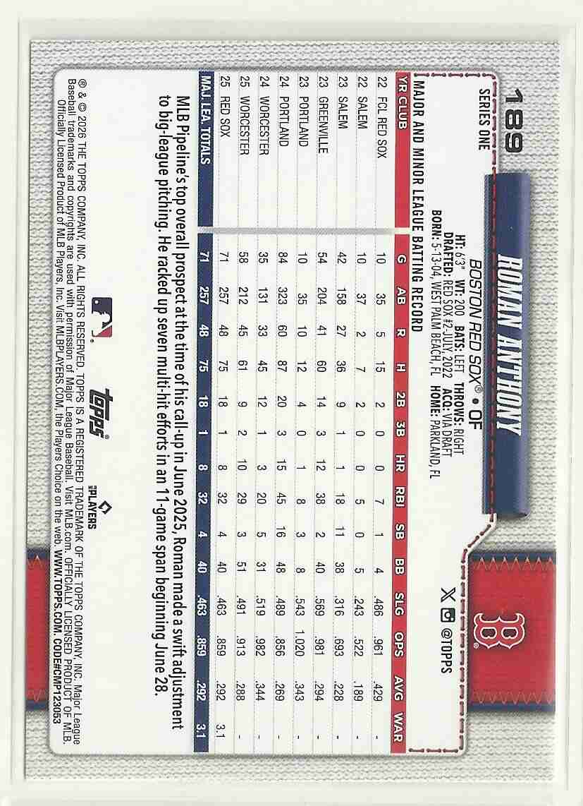 ROMAN ANTHONY 2026 Topps #189 Spring Training VAR RC