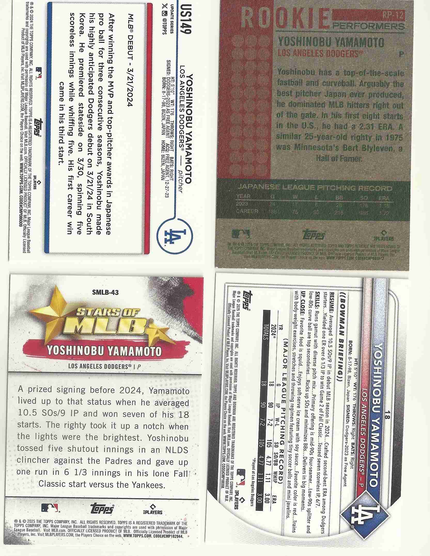 Lot of (4) YOSHINOBU YAMAMOTO cards Rookies Inserts