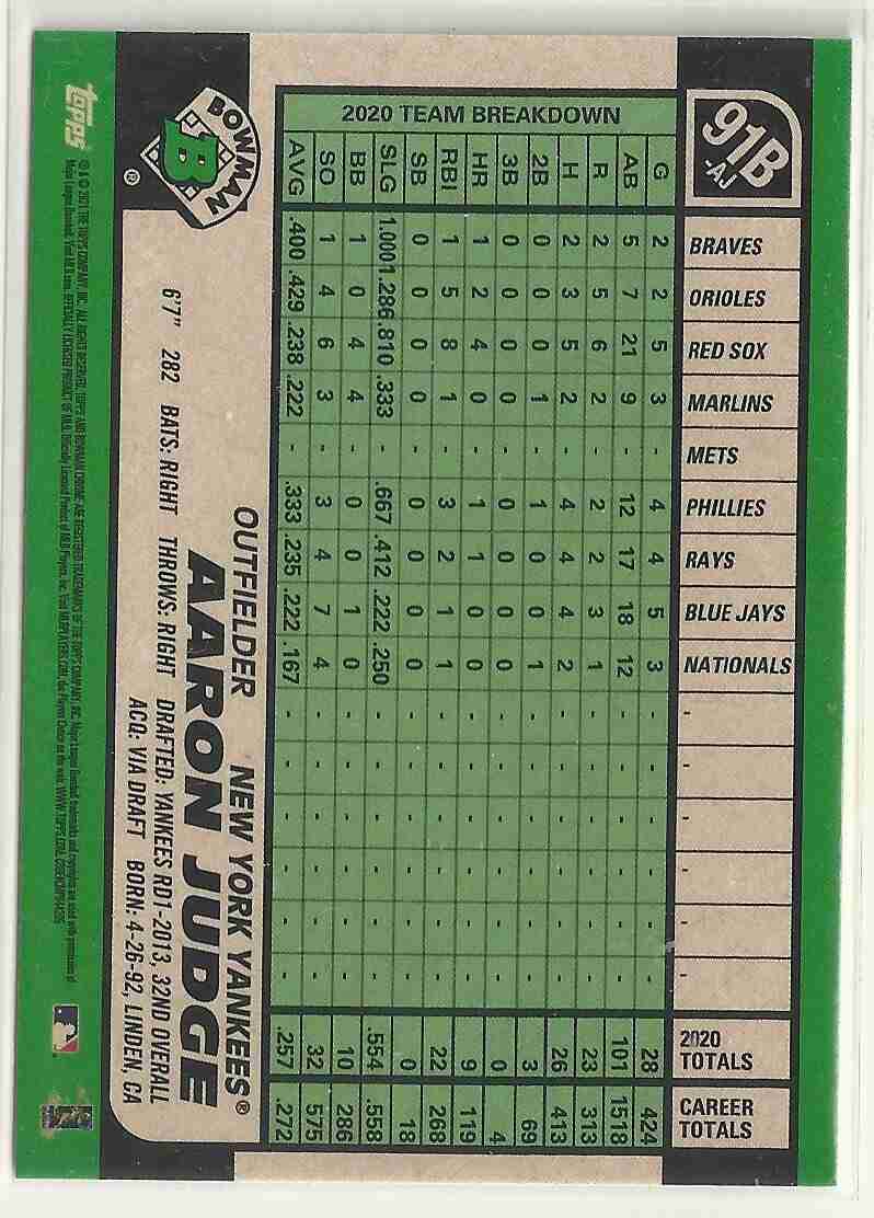 AARON JUDGE 2021 Bowman Chrome 1991 Refractor 91B-AJ