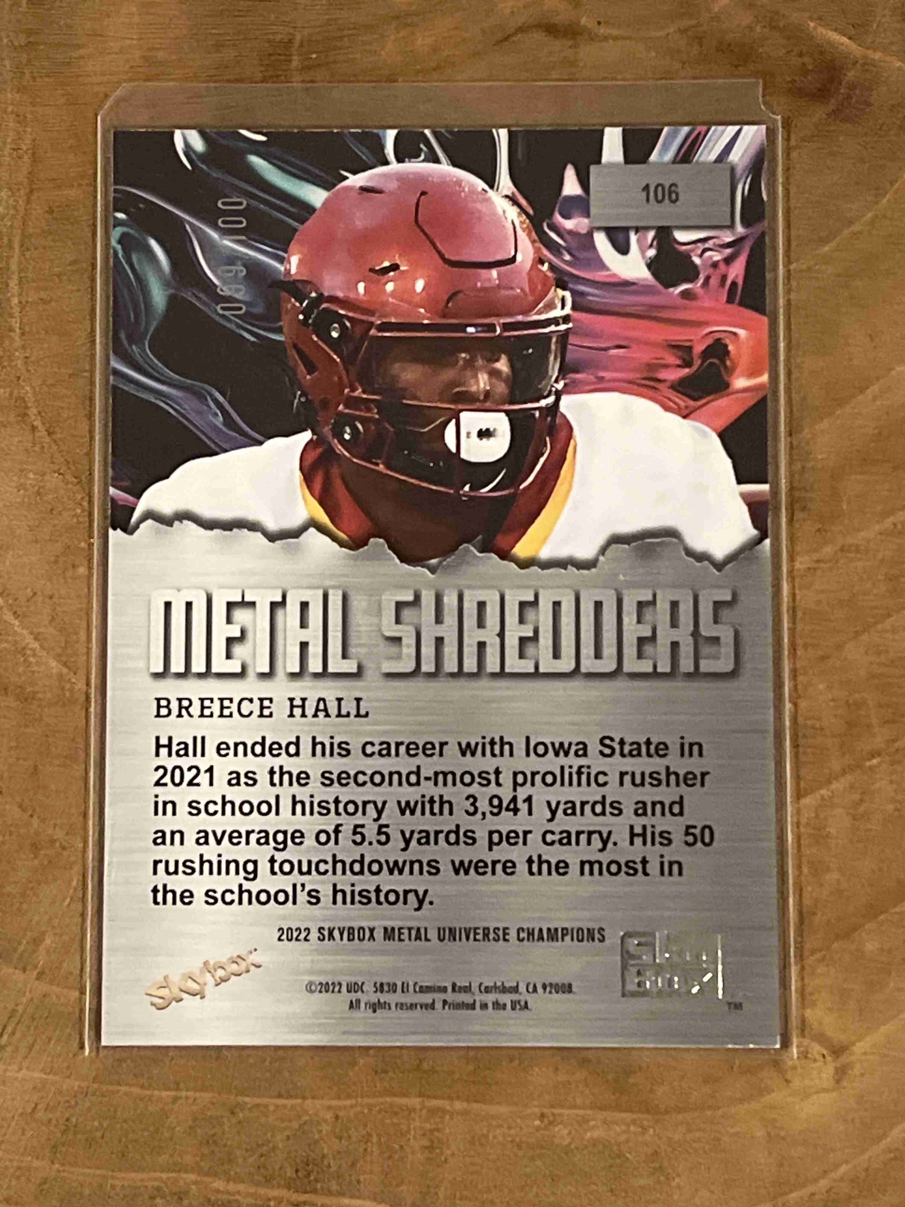 2022 Skybox Metal (Precious Metal Gems) Breece Hall RC #ED/100 very rare and awesome card of this up and coming running back.
