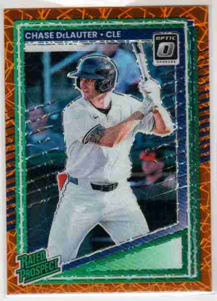 lease take a look at the photo for details on the card's condition. The card you are bidding on is the card pictured. This auction is for a 2025 Donruss Optic Orange Velocity Rated Prospect parallel of #107 Chase DeLauter. If you have any questions or require more detailed images, please don't hesitate to ask. Note: The shipping price shown is for PWE. The card will ship with a tracking number if the final auction price exceeds a certain dollar amount (or when combined with some other completed auctions). Otherwise, the card will be shipped PWE. Thank you!