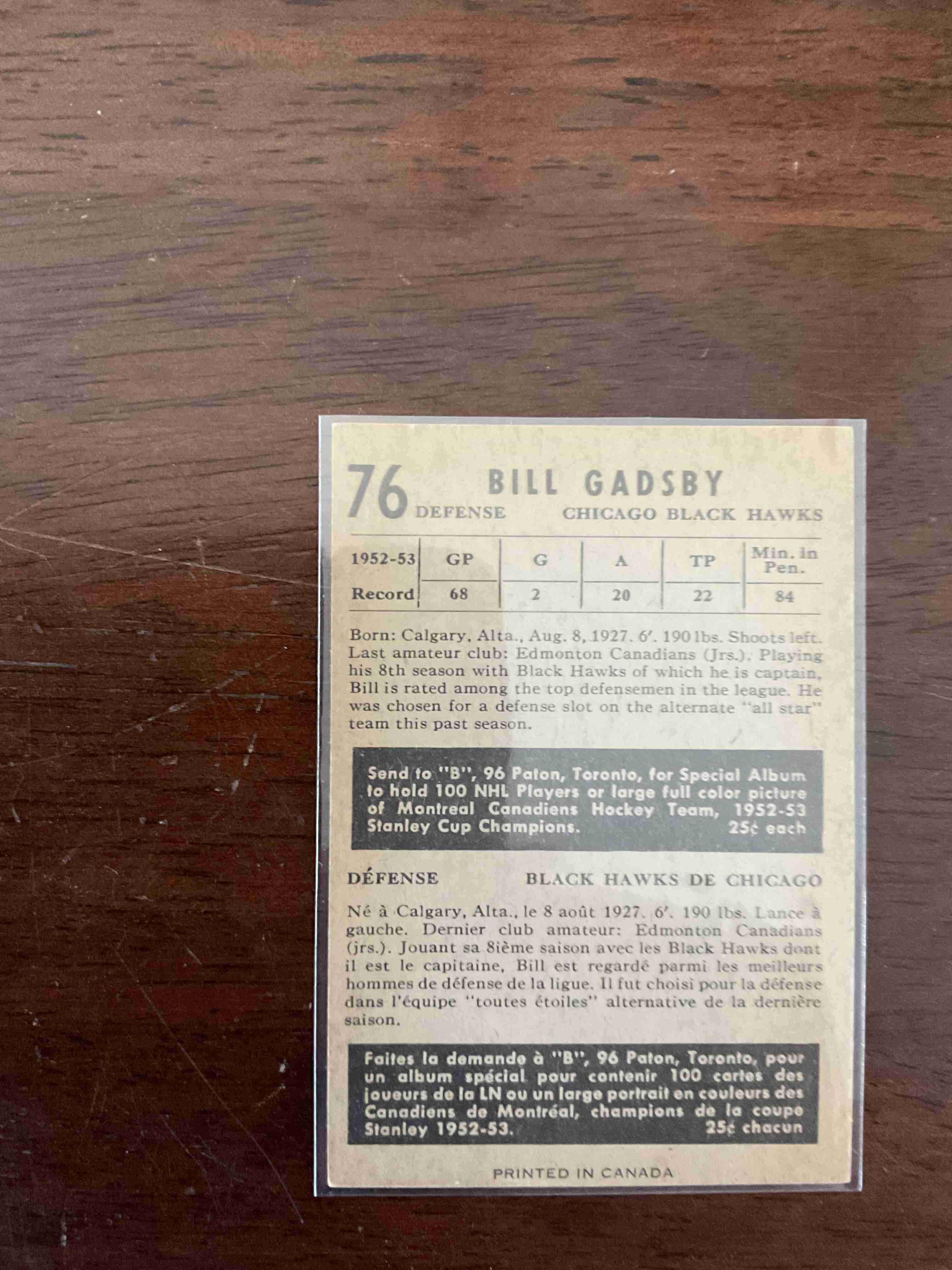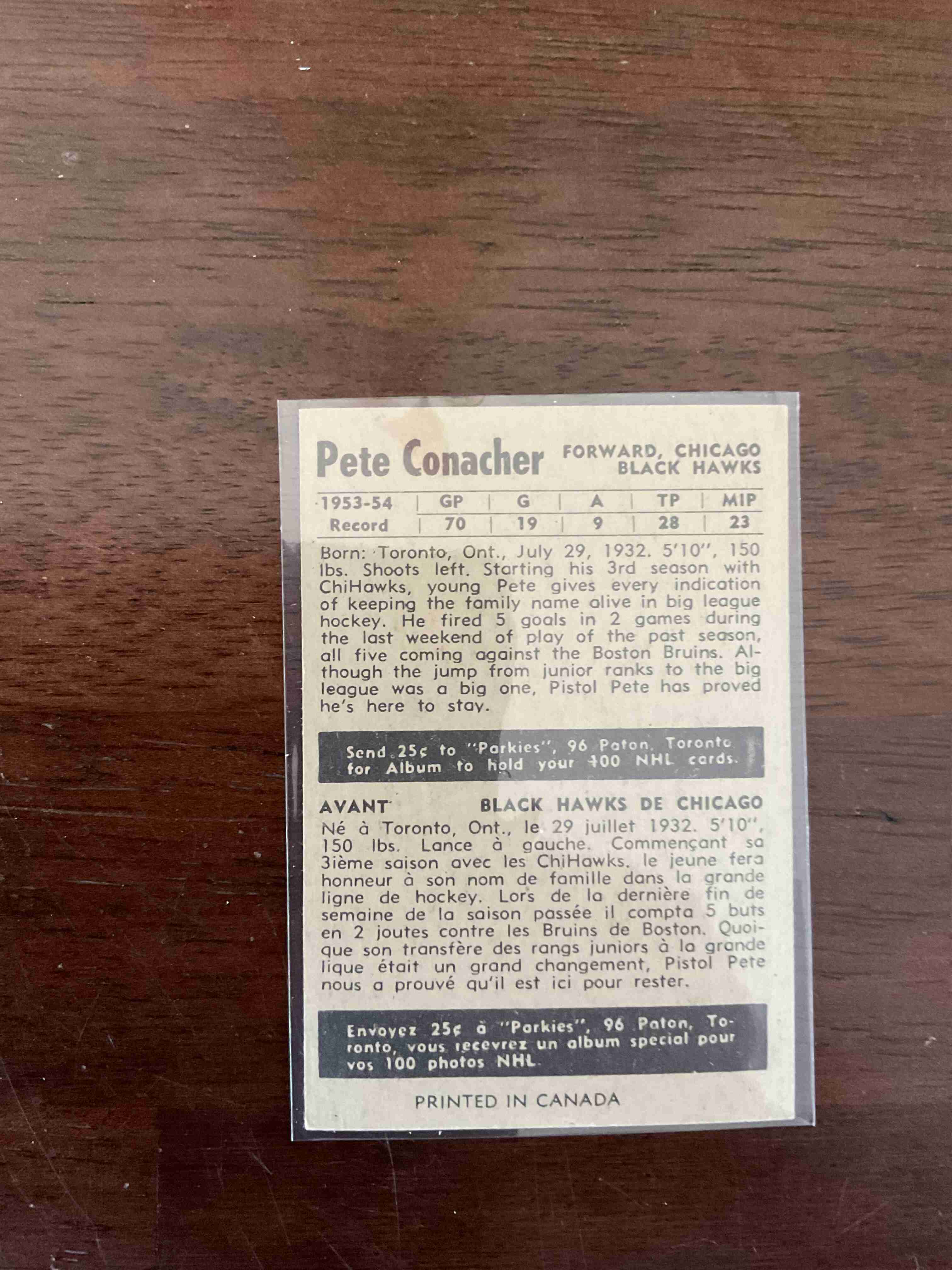 EARLY 50’S PARKHURST BLACKHAWKS GADSBY CONACHER