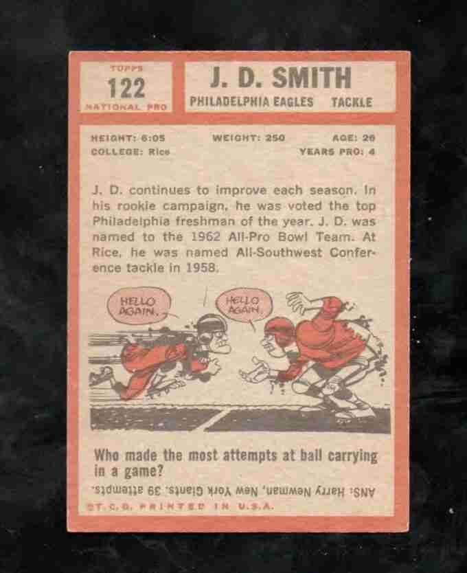 1962 Topps # 122 J.D SMITH Eagles EX+