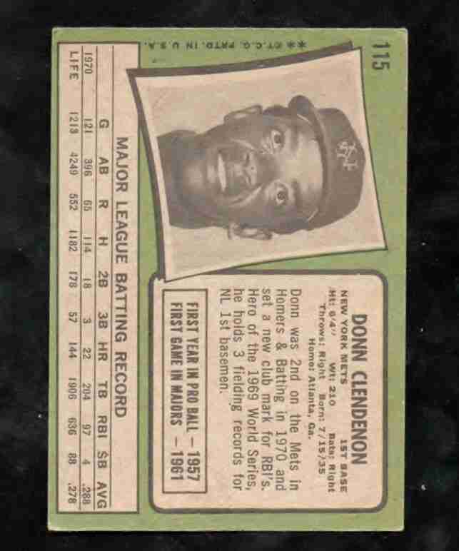 1971 Topps #115 DONN CLENDENON NY Mets