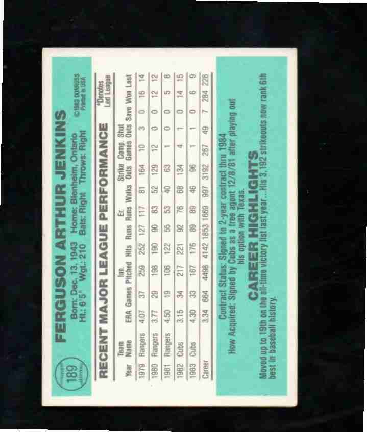 1984 Donruss #189 FERGUSON JENKINS Cubs NM