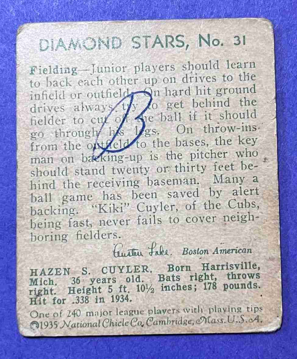 1934-36 DiamondStars KIKI CUYLER #31 HOF!