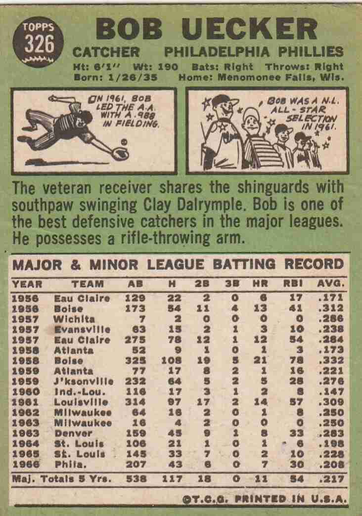 1967 Topps #326 Bob Uecker Phillies