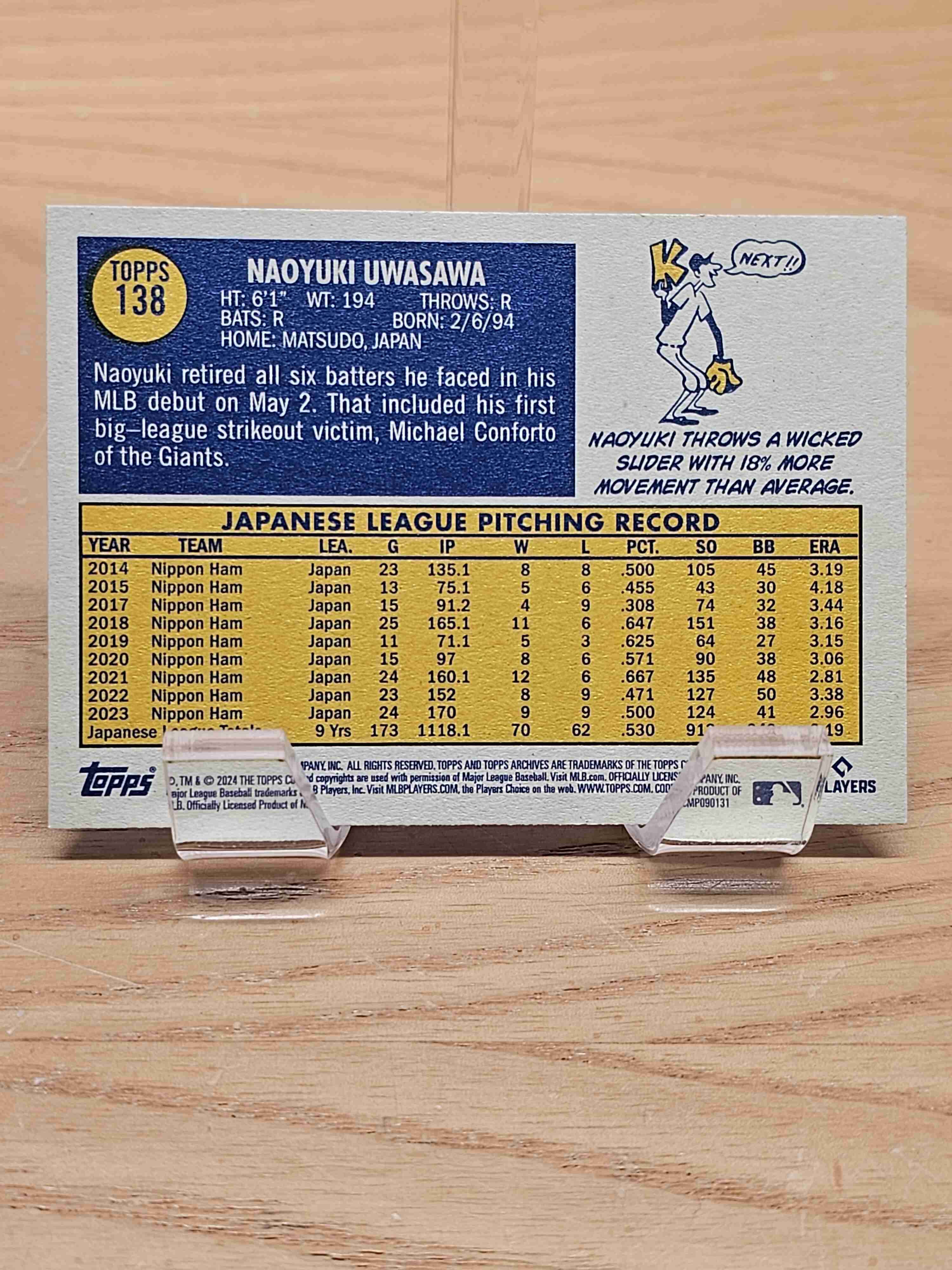 2024 Topps Archives Baseball Rookie RC Naoyuki Uwasawa Boston Red Sox Card #138