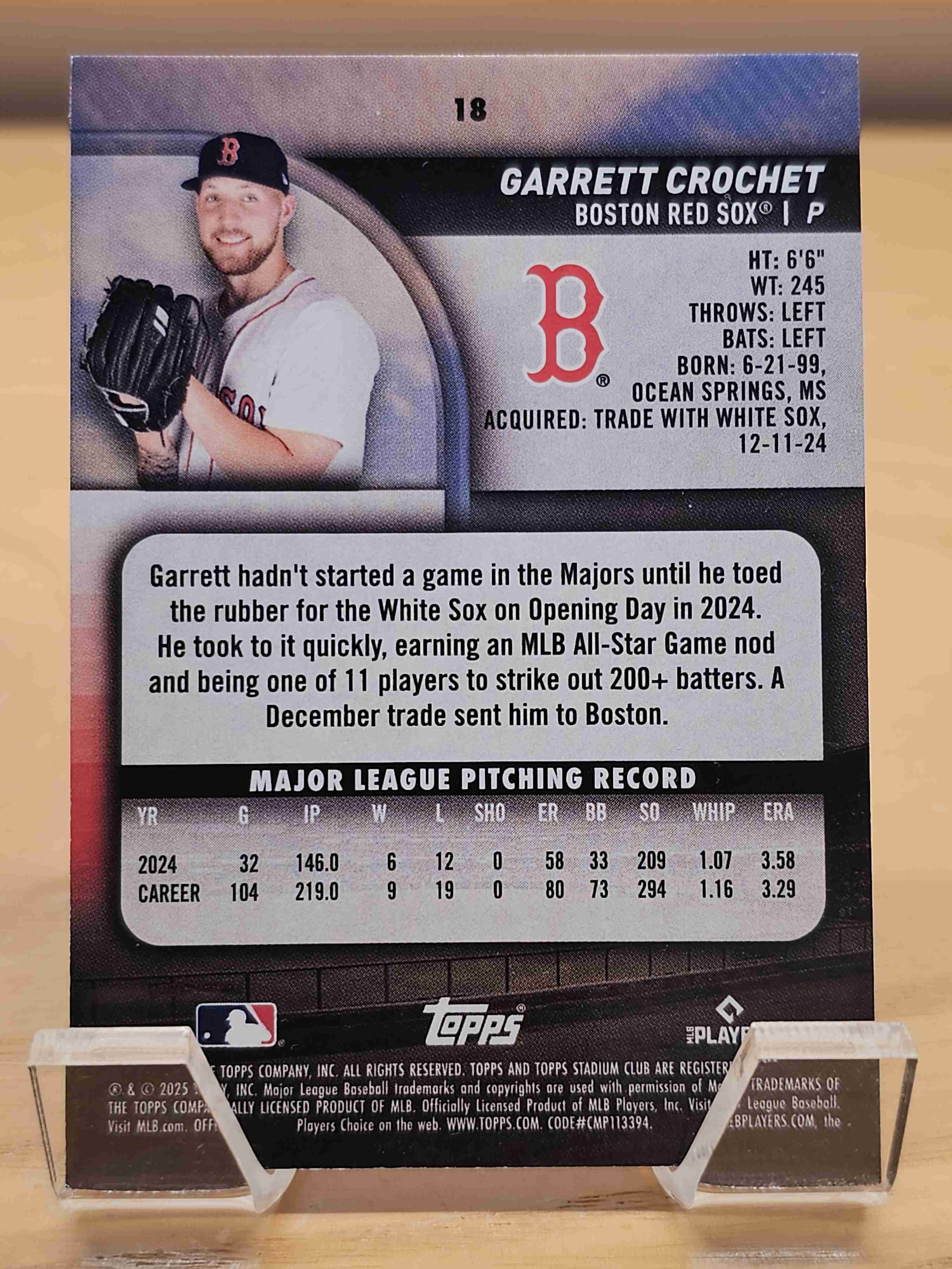 2025 Topps Stadium Club Baseball Garrett Crochet Boston Red Sox Card #18