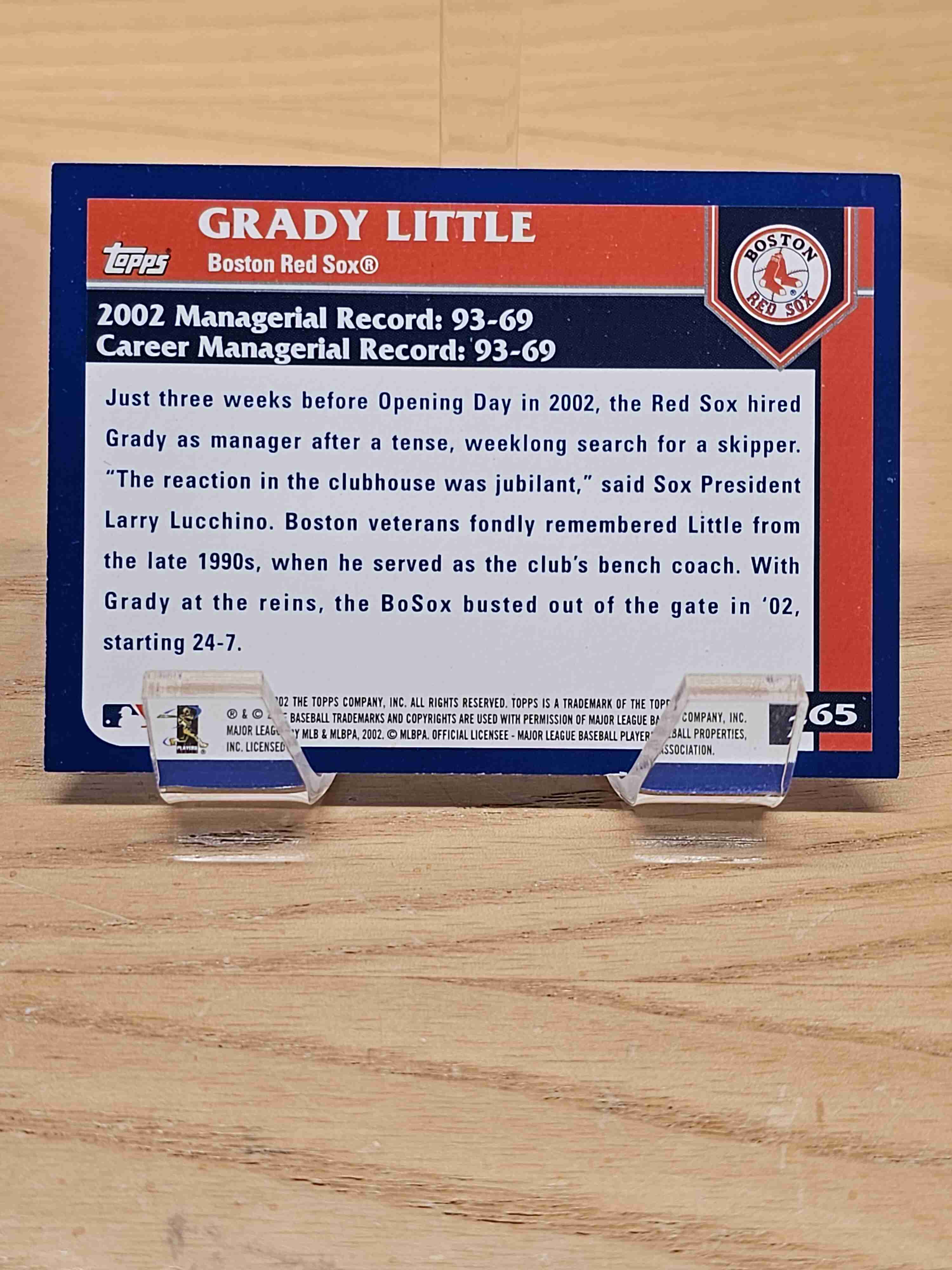 2002 Topps Baseball Manager Grady Little Boston Red Sox Card #265