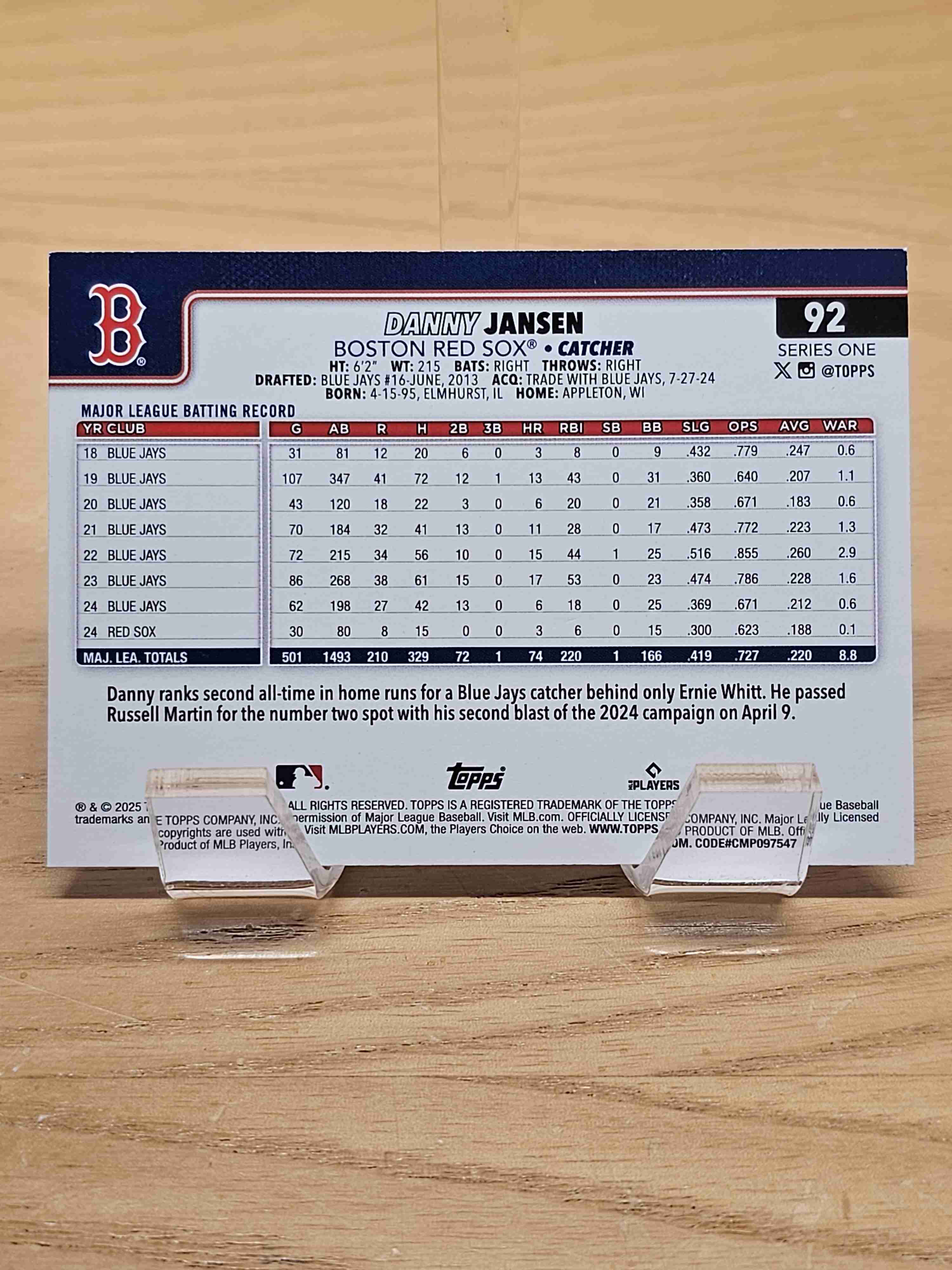 2025 Topps Series One Danny Jansen Boston Red Sox #92