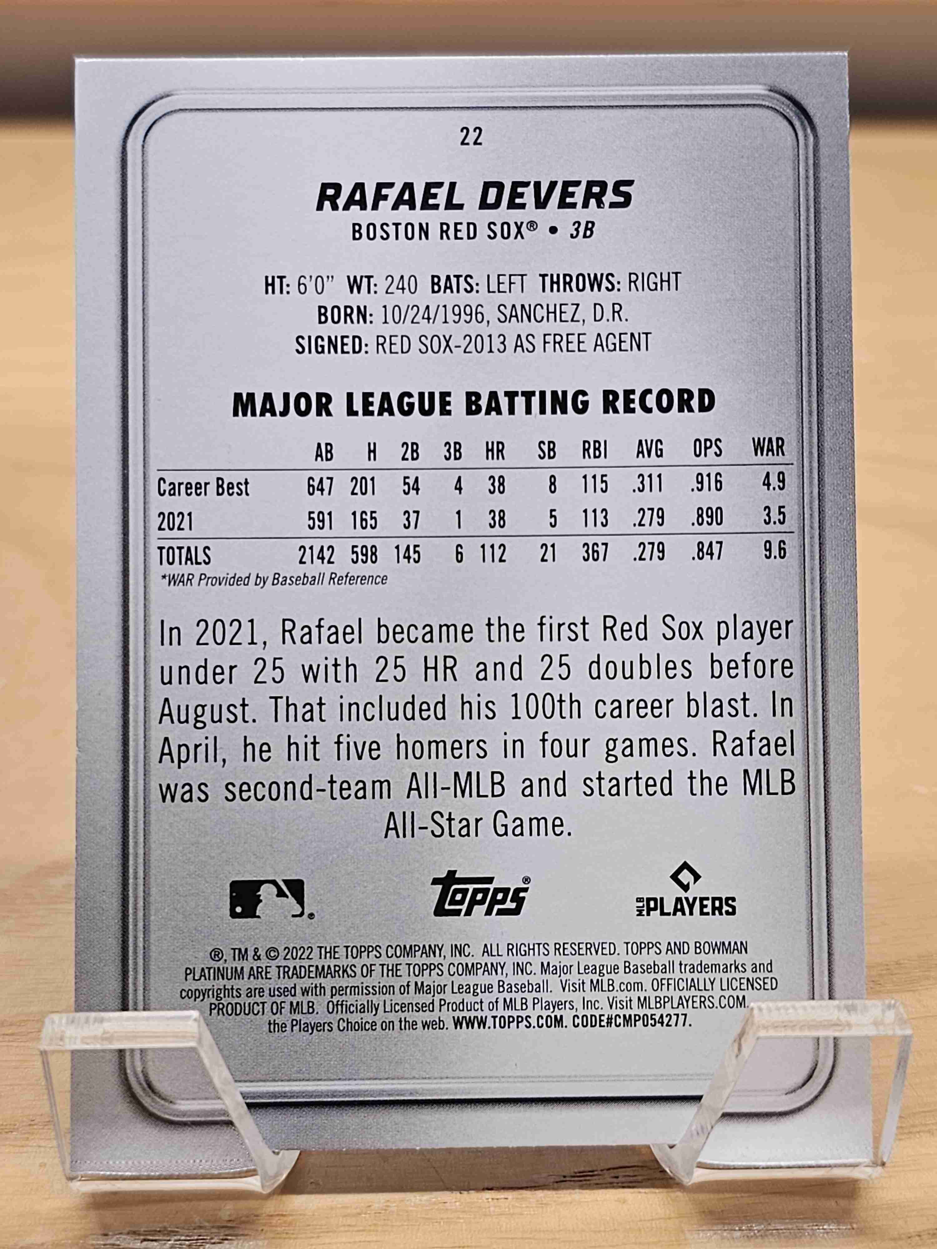 2022 Bowman Platinum Rafael Devers Boston Red Sox #22