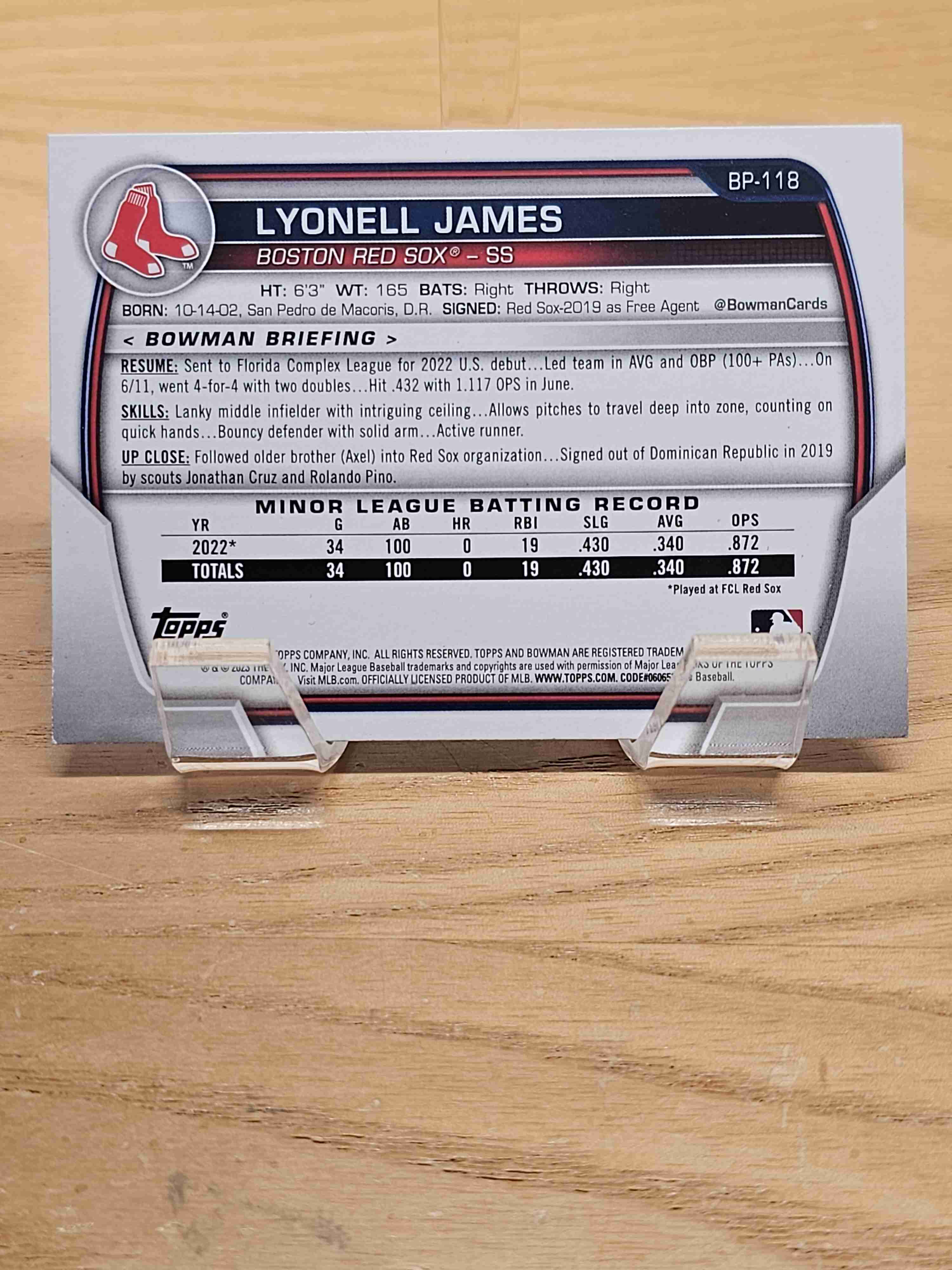 2023 Bowman 1st Bowman Prospects Lyonell James Red Sox