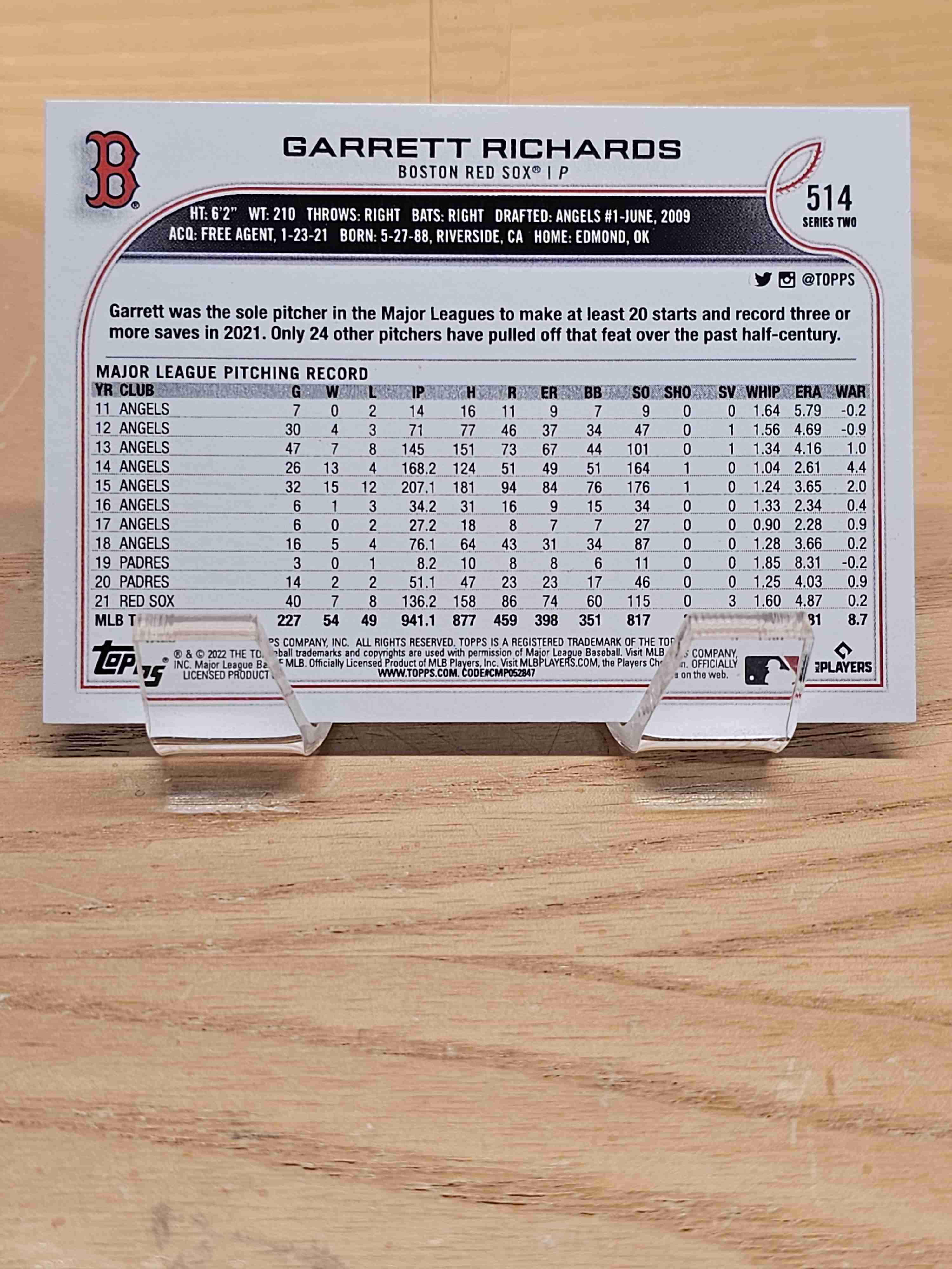 2022 Topps Series Two Baseball Garrett Richards Boston Red Sox Card #514