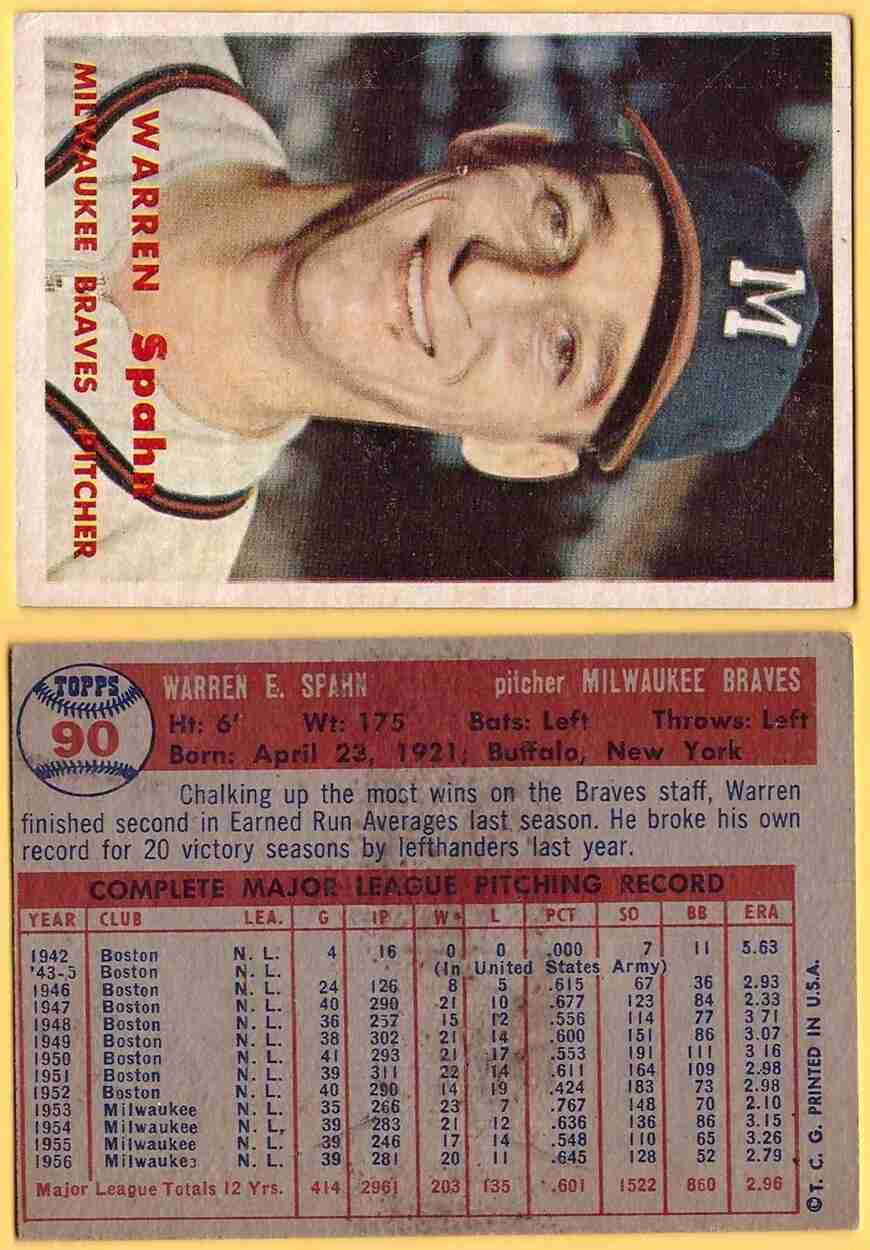 1957 Topps #90 Warren Spahn <=====================>[SL340]