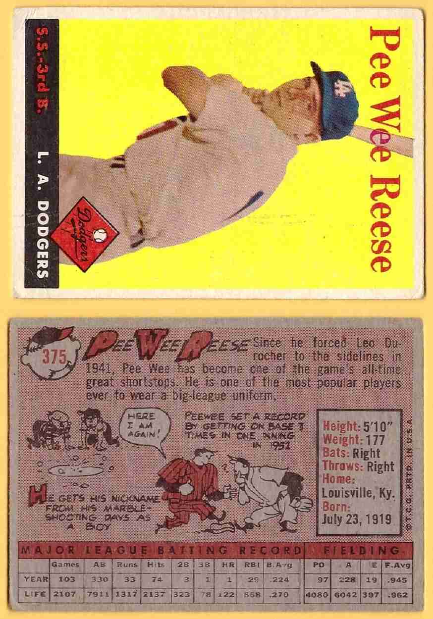 1958 Topps #375 PeeWee Reese <====================>[SL341] refer to pictures for condition/grade of card =================================================