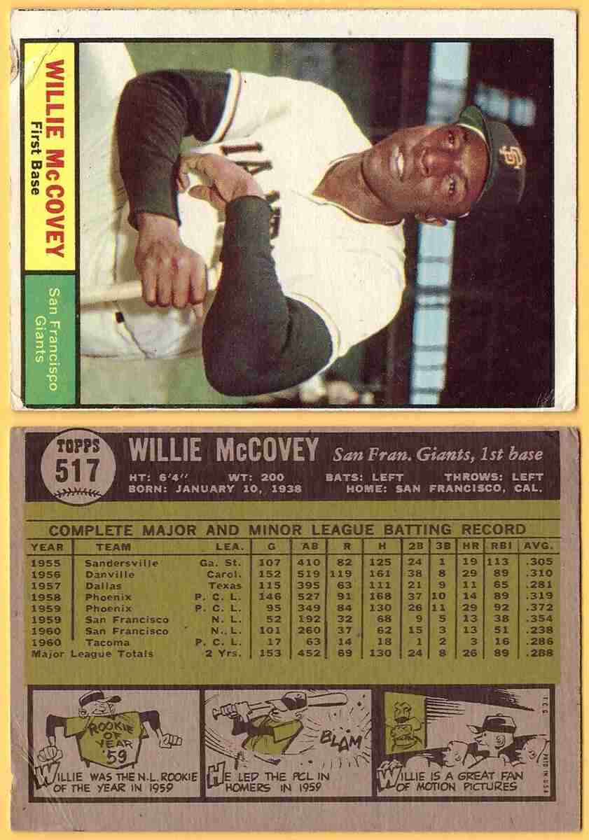 1961 Topps #517 Willie McCovey <==================>[SL342] refer to pictures for condition/grade of card =================================================