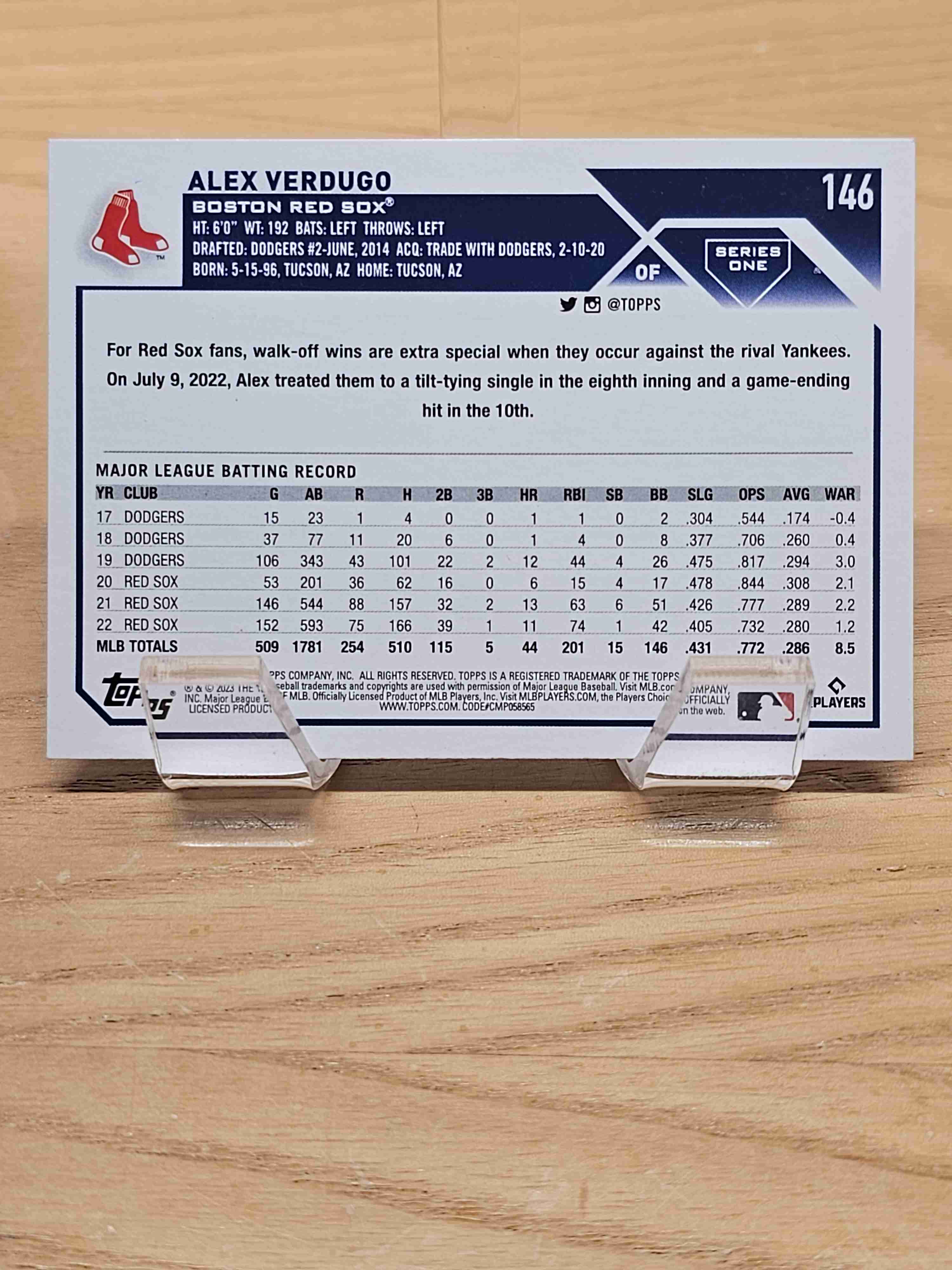 2023 Topps Series One Baseball Alex Verdugo Boston Red Sox Card #146