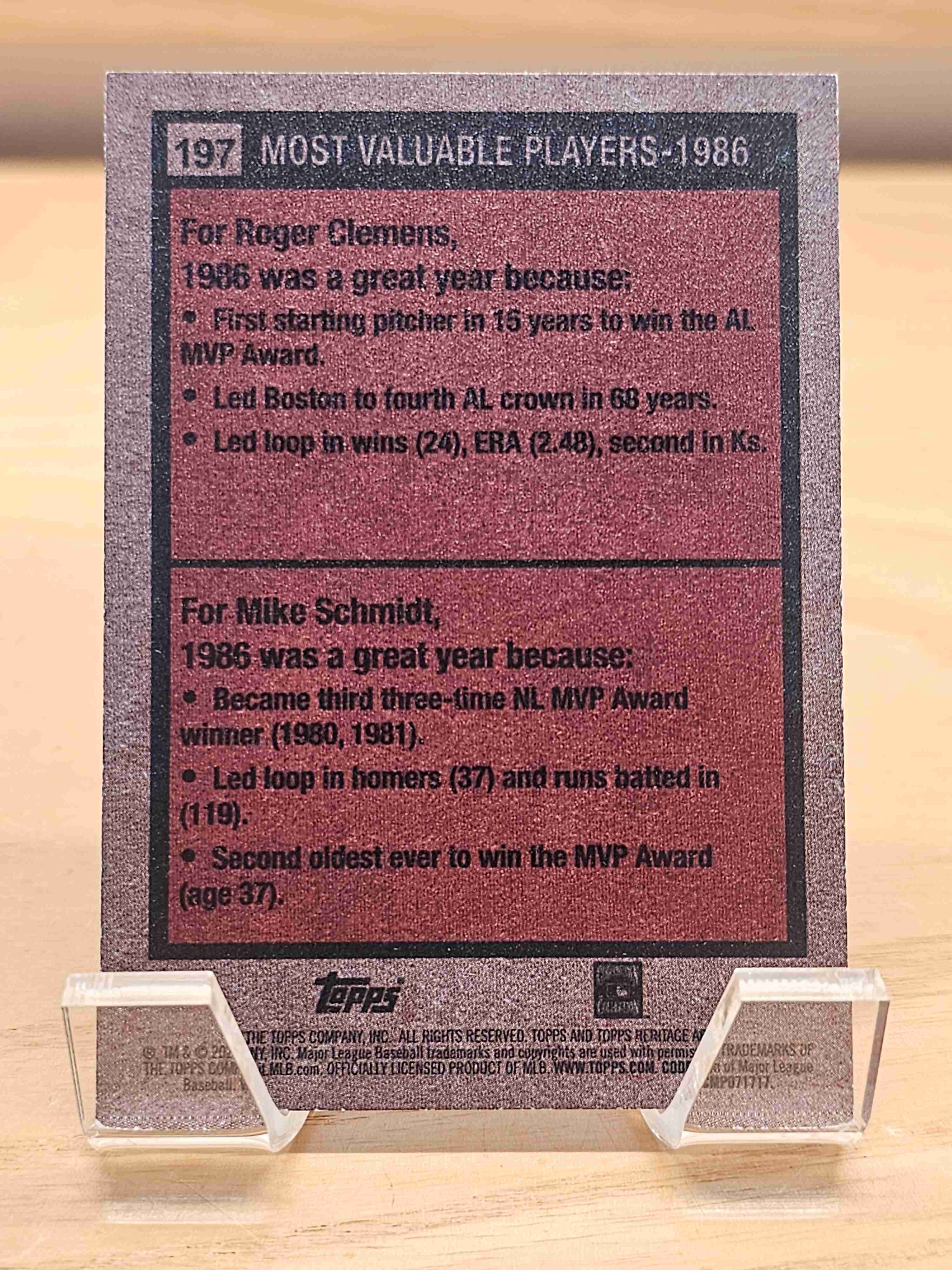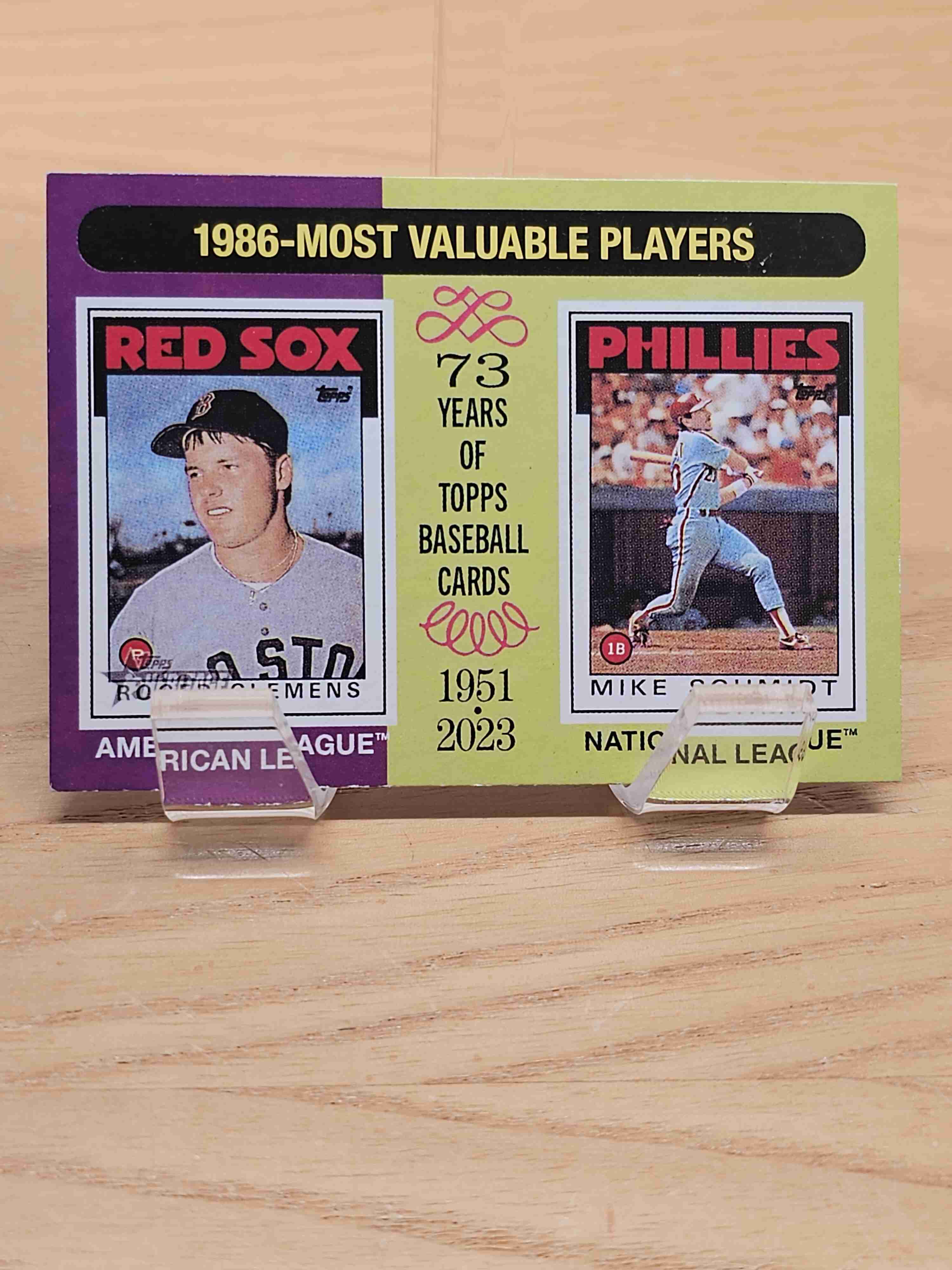 2024 Topps Heritage Baseball 1986 Most Valuable Players Roger Clemens Mike Schmidt Boston Red Sox Philadelphia Phillies Card #197
