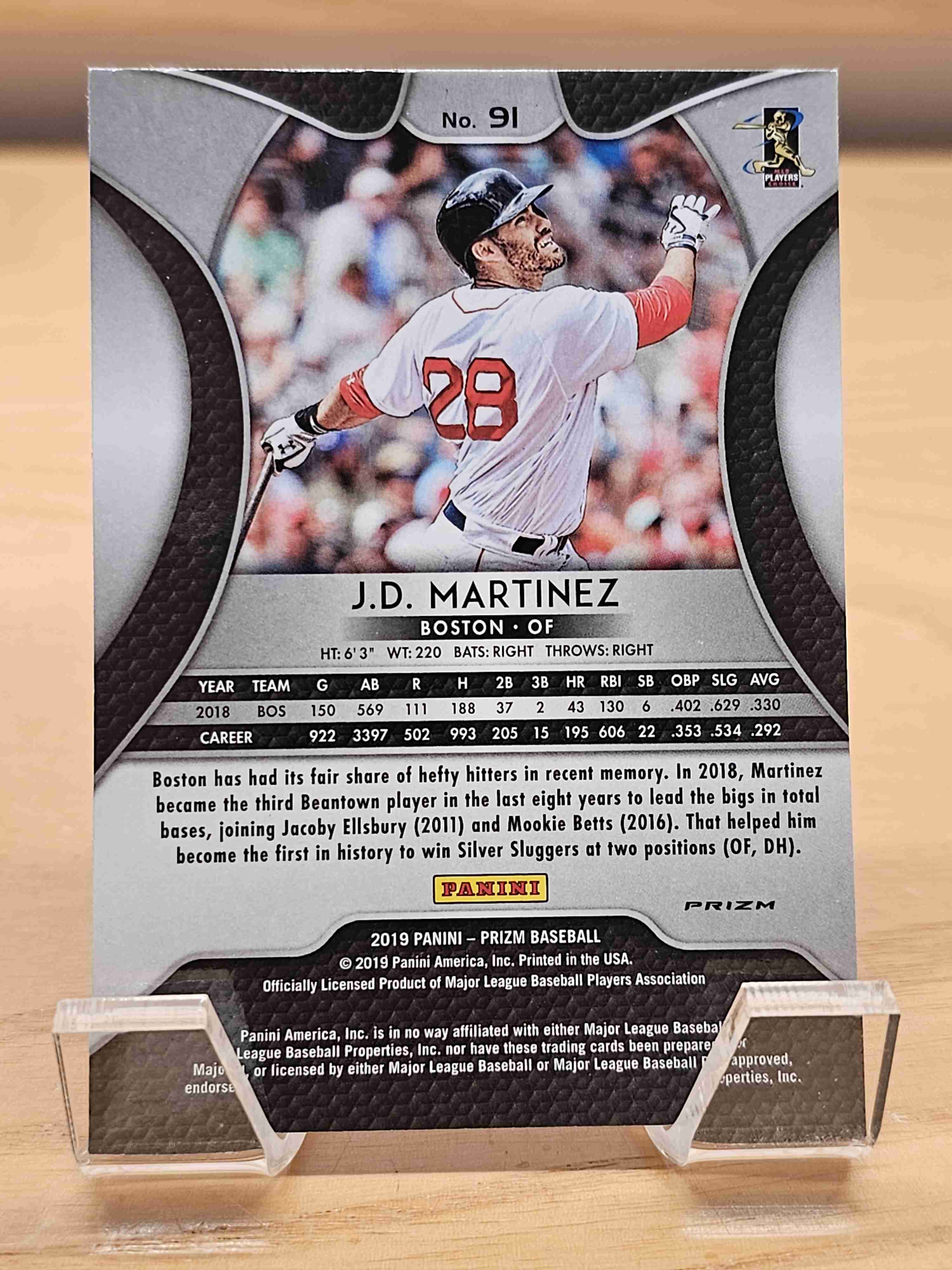 2019 Panini Prizm Baseball Purple Refractor Prizm J.D. Martinez Boston Red Sox Card #91