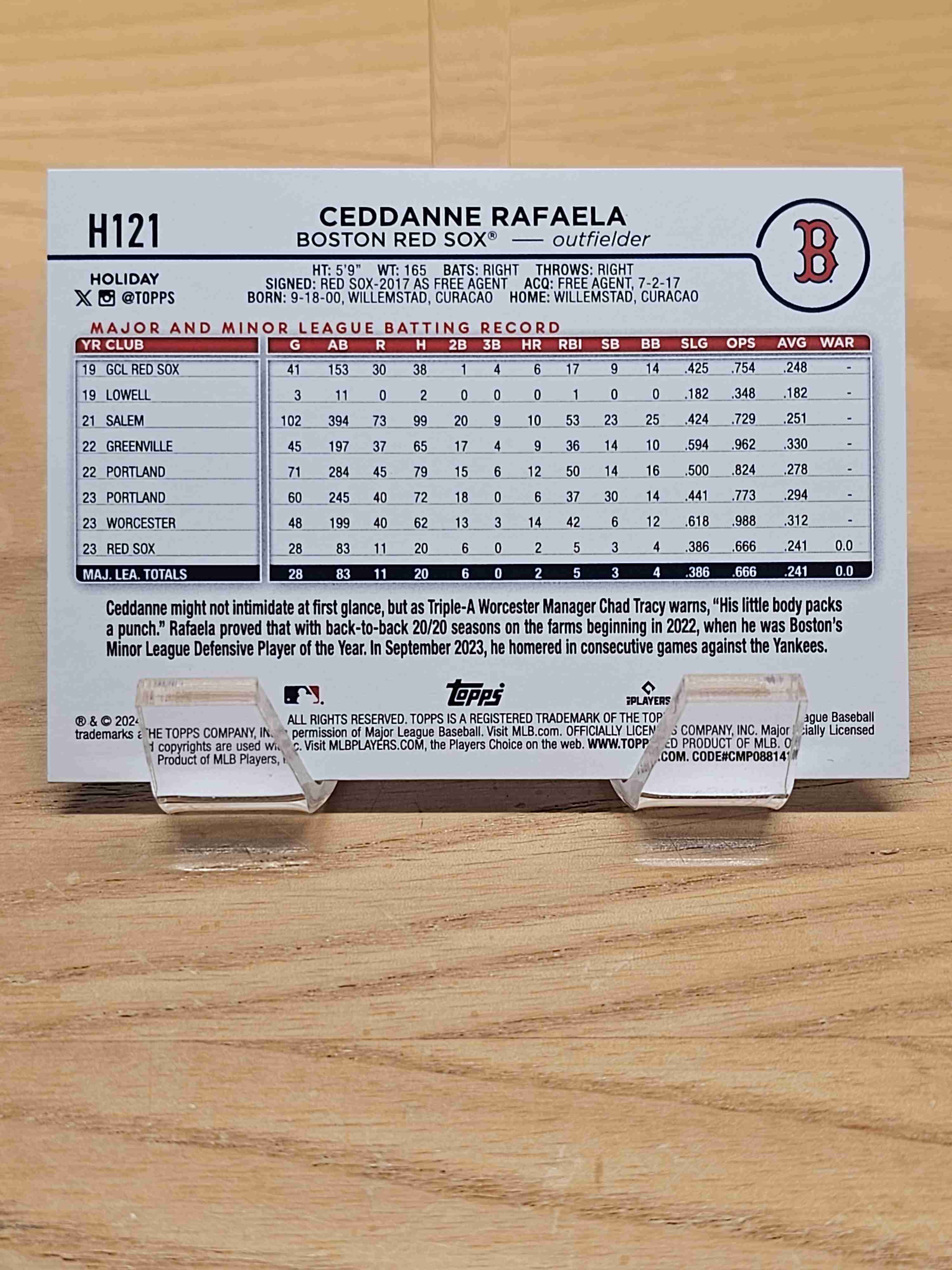 2024 Topps Holiday Baseball Rookie RC Ceddanne Rafaela Boston Red Sox Card #H121
