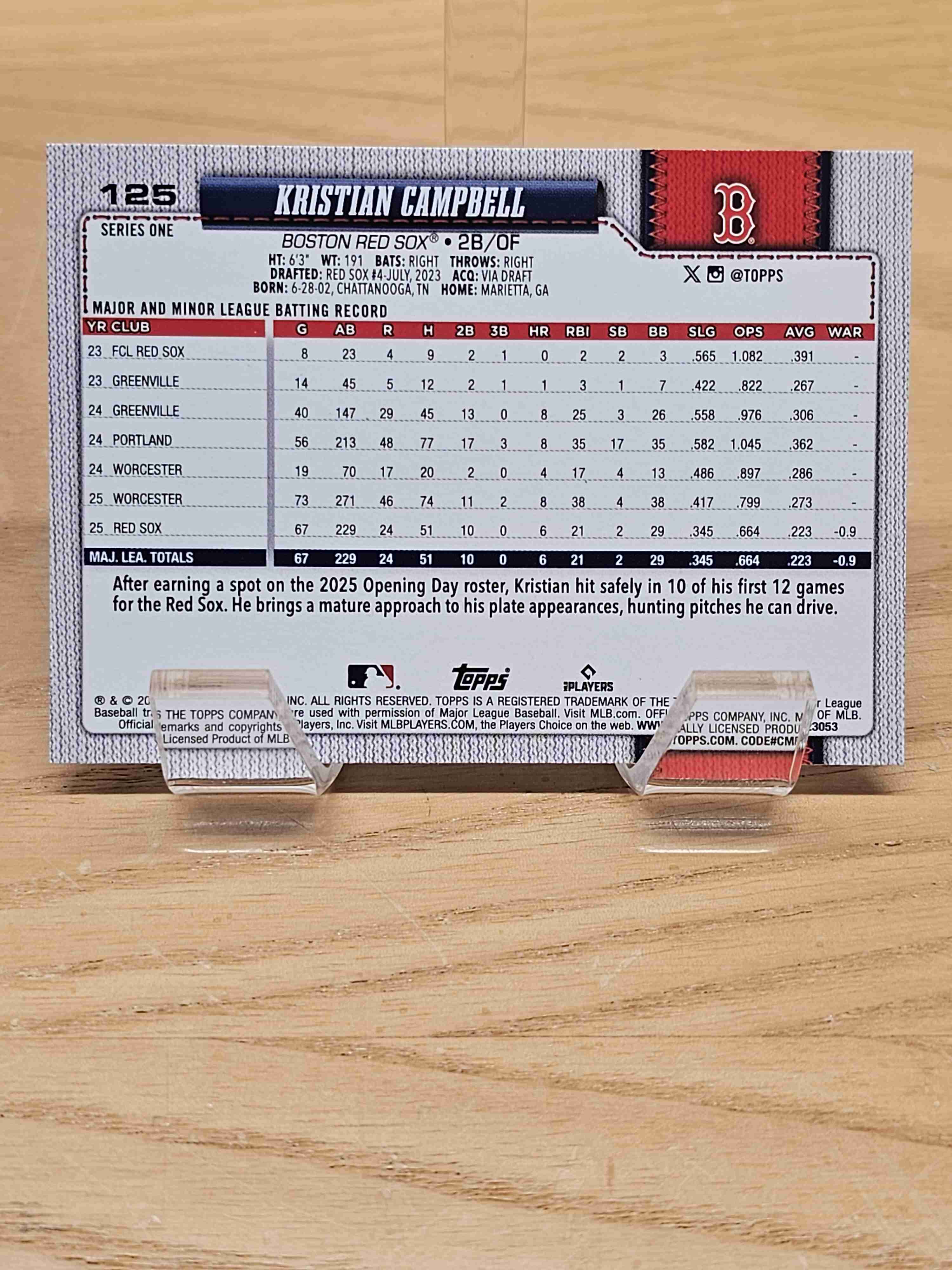 2026 Topps Series One Baseball Future Stars Kristian Campbell Boston Red Sox Card #125