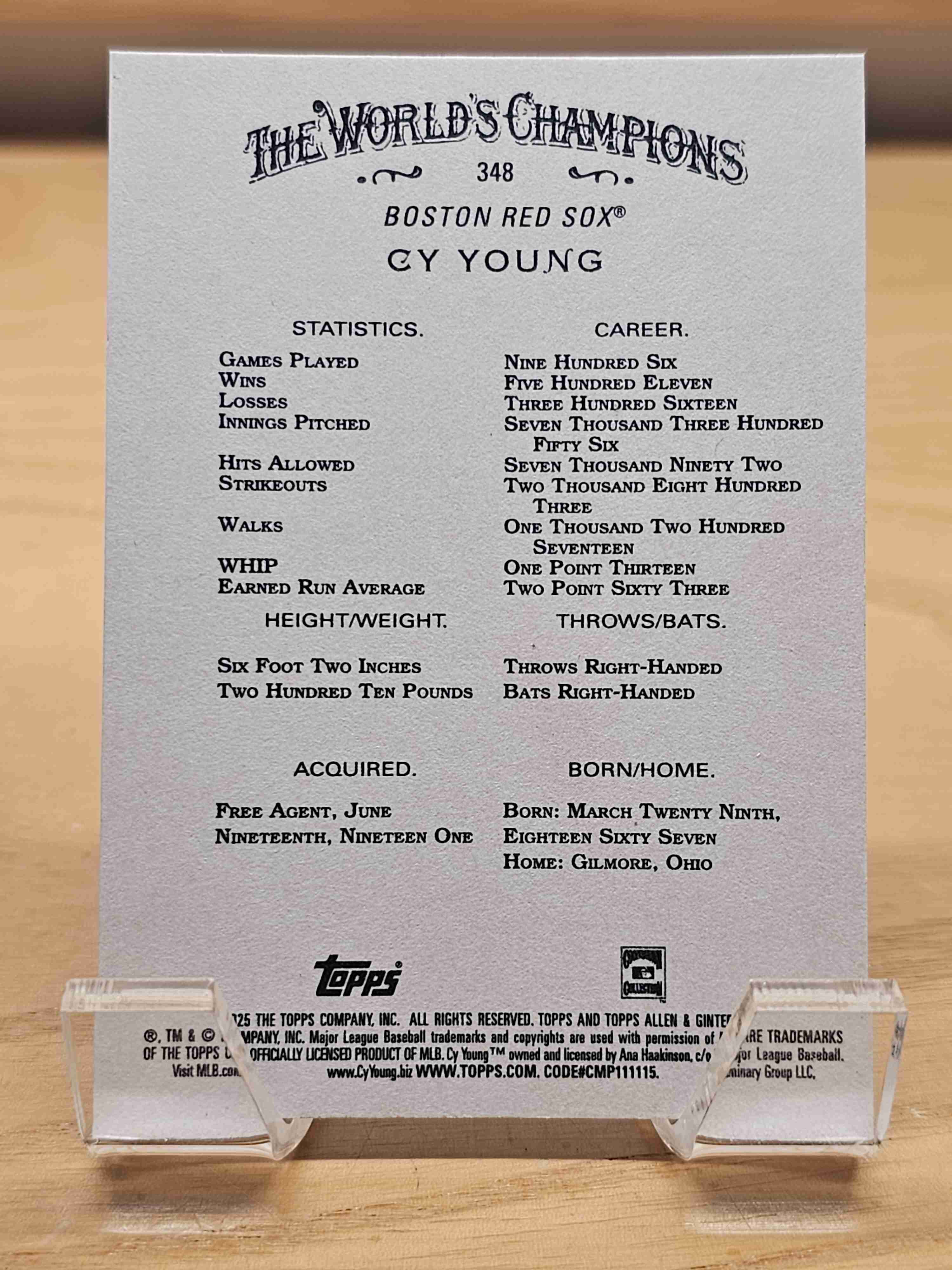 2025 Topps Allen & Ginter Baseball Cy Young Boston Red Sox Card #348