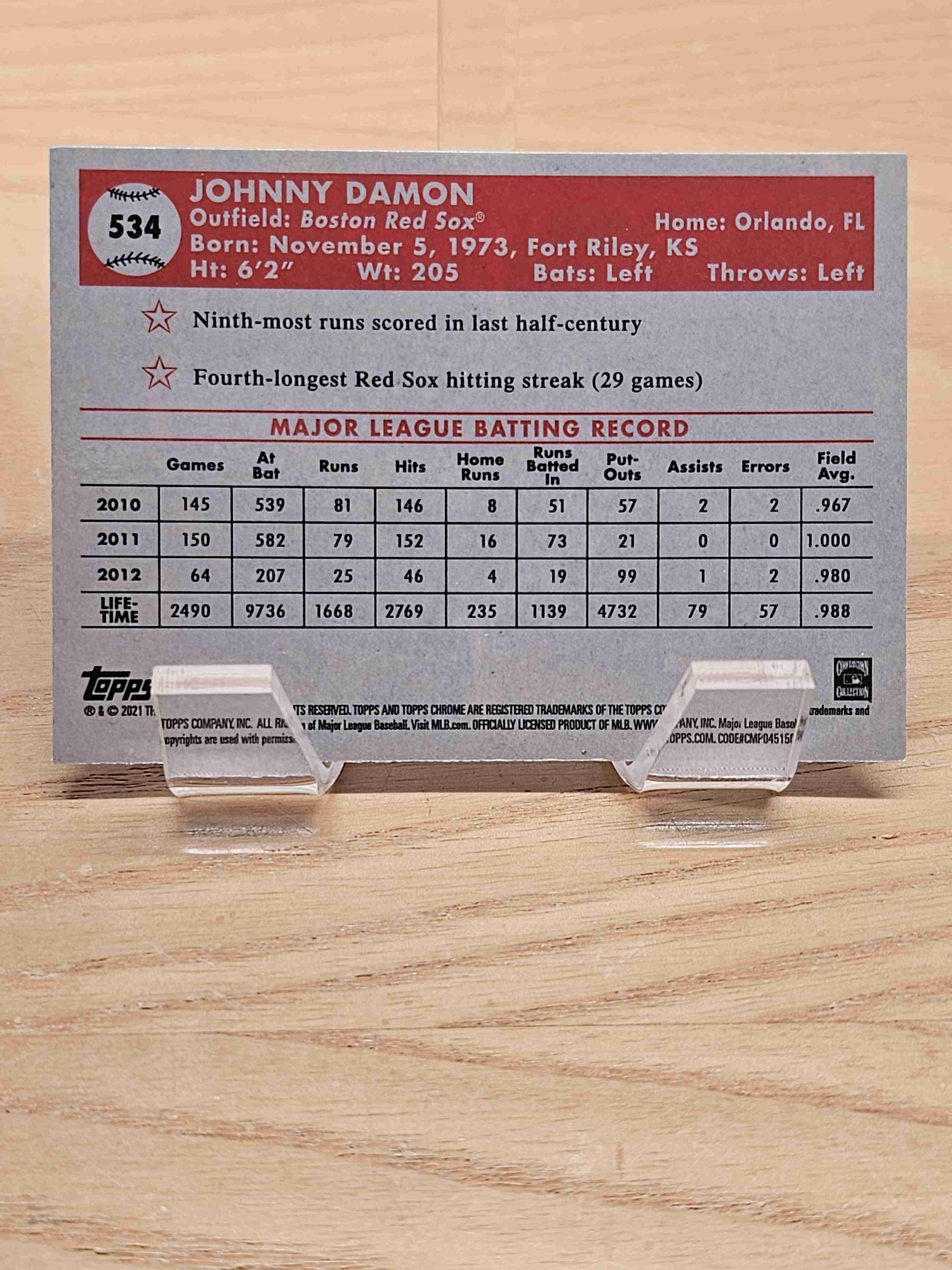 2021 Topps Chrome Platinum Anniversary Baseball Johnny Damon Boston Red Sox Card #534
