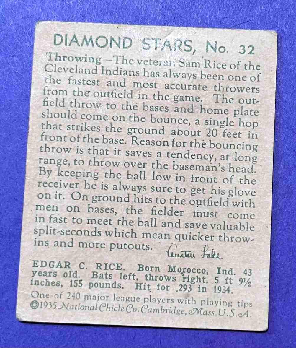 1934-36 DiamondStars SAM RICE #32 HOF!