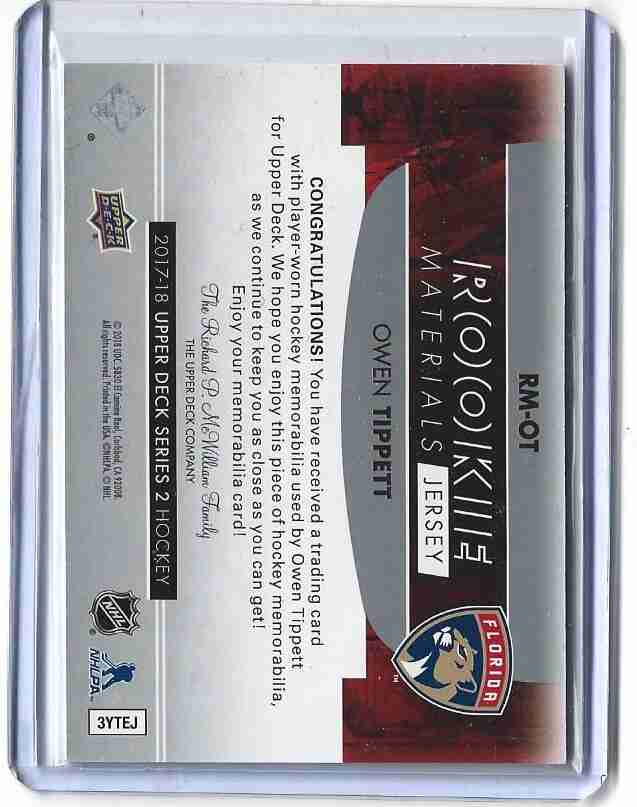2017/18 UD 2 OWEN TIPPETT ROOKIE MATERIALS JERSEY