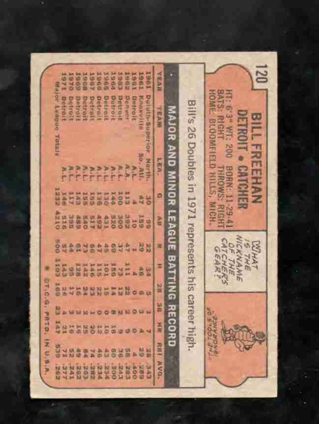 1972 Topps # 120 BILL FREEHAN Tigers EX/NM