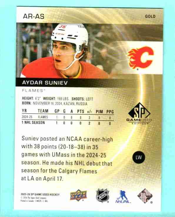 Aydar Suniev 2025-26 SP Game Used Gold Rookies #AR-AS 62/149
