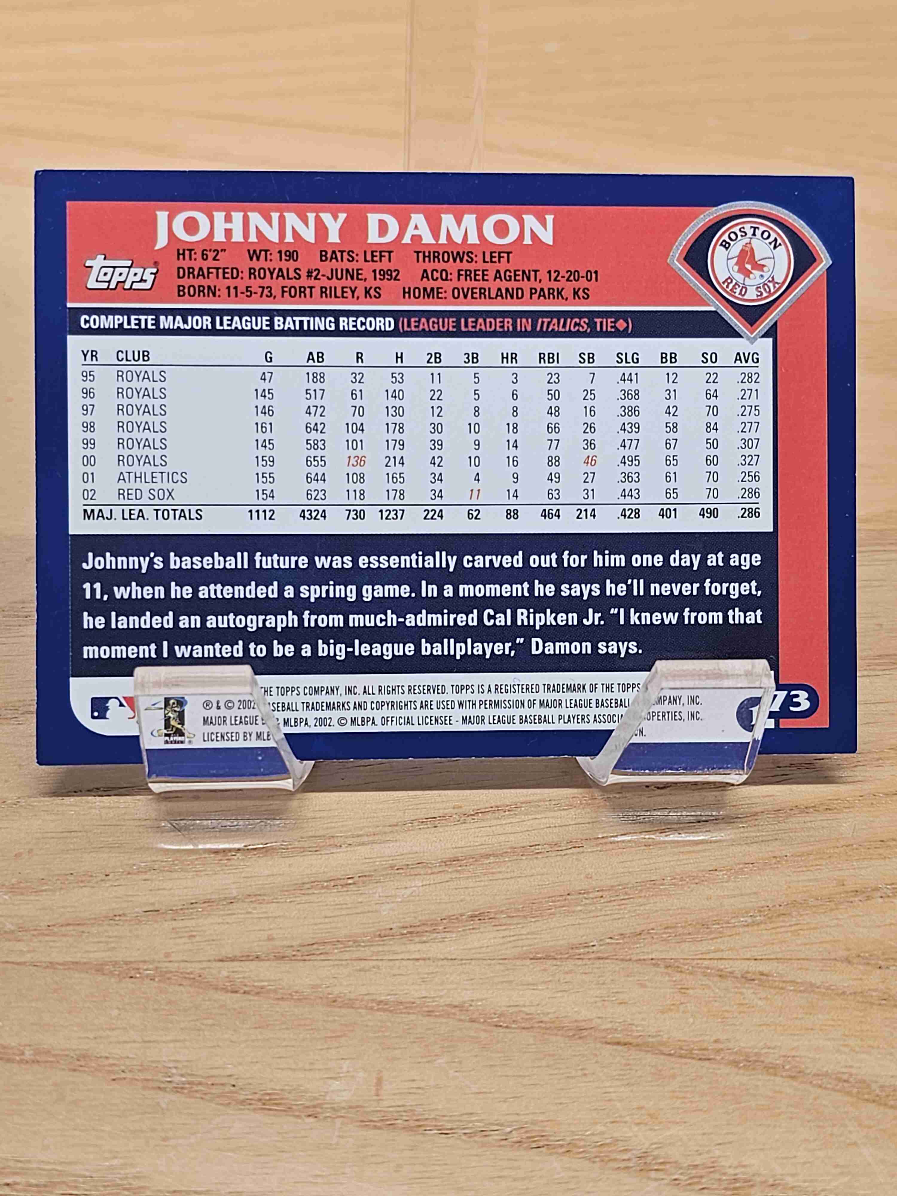 2002 Topps Johnny Damon Boston Red Sox #173