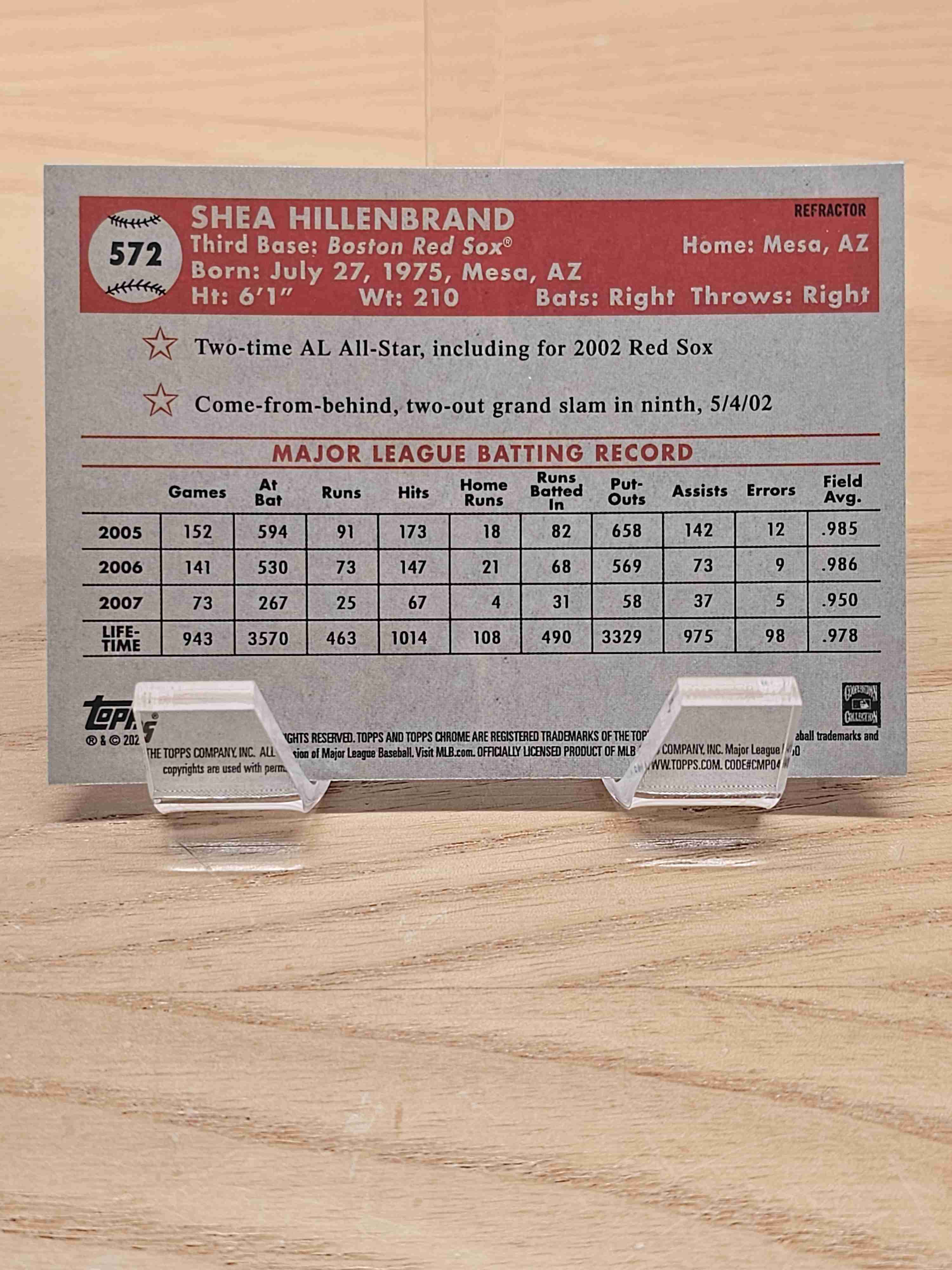 2021 Topps Chrome Platinum Anniversary Baseball Refractor Shea Hillenbrand Boston Red Sox Card #572