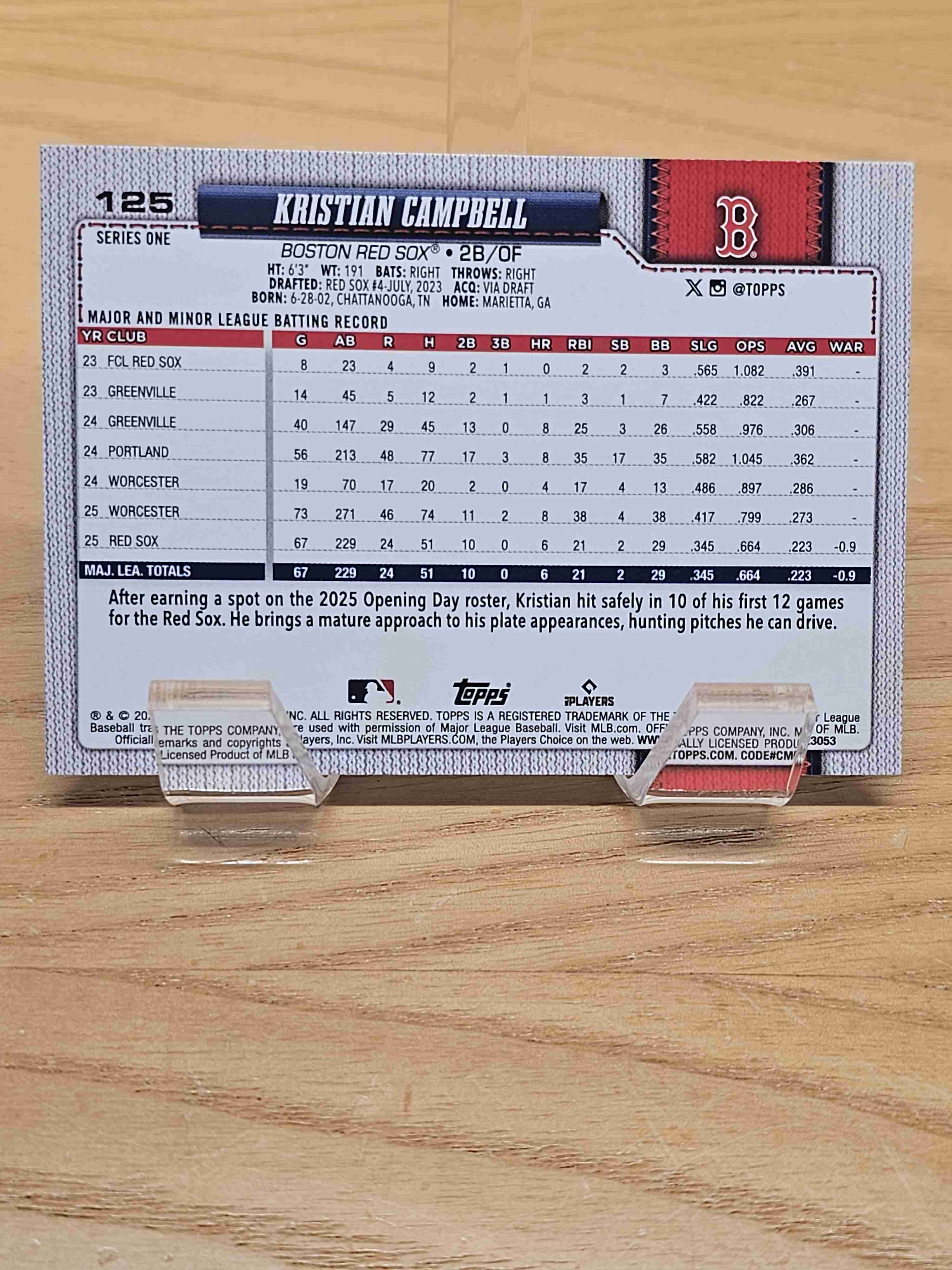 2026 Topps Series One Baseball Future Stars Kristian Campbell Boston Red Sox Card #125