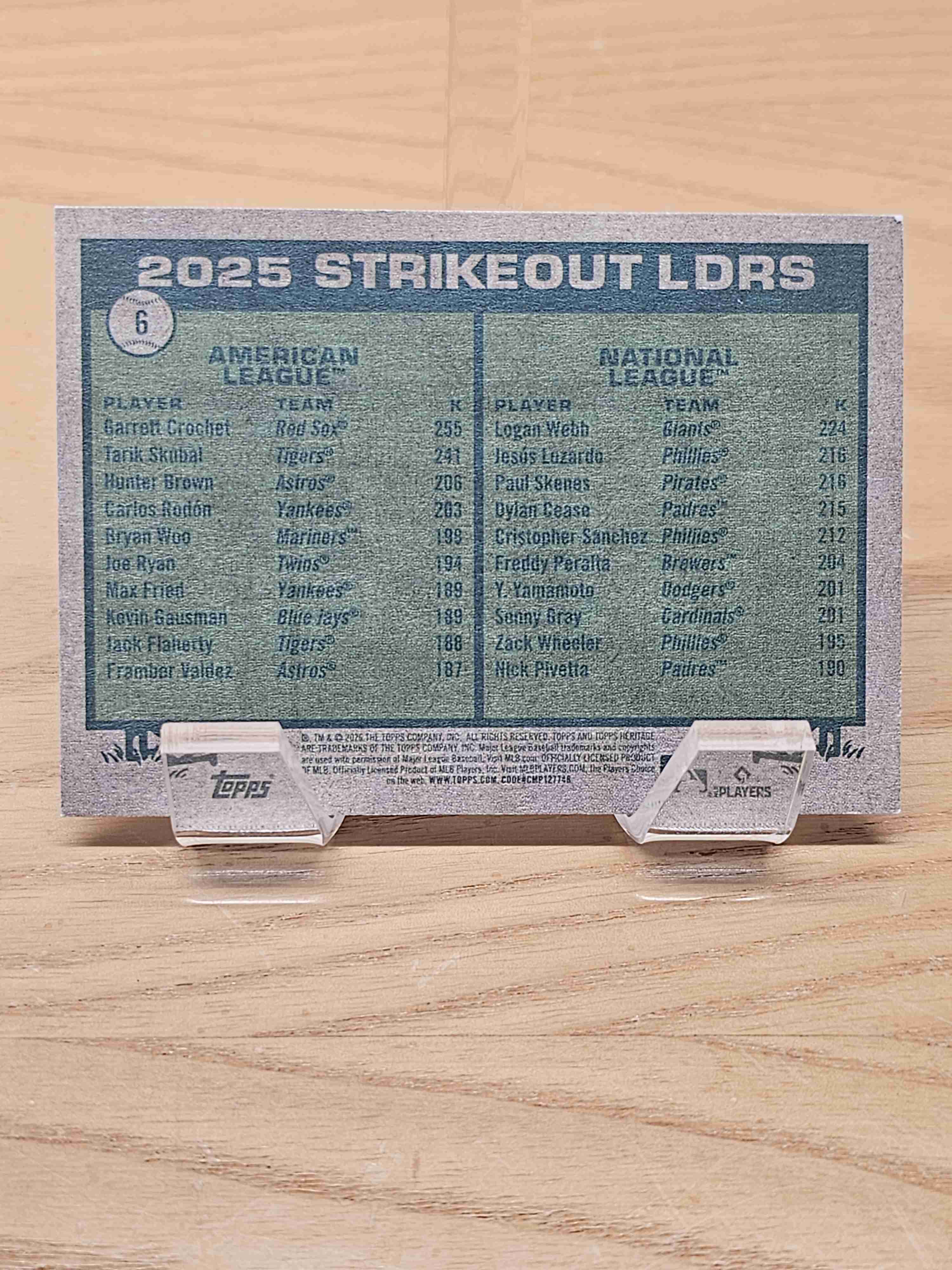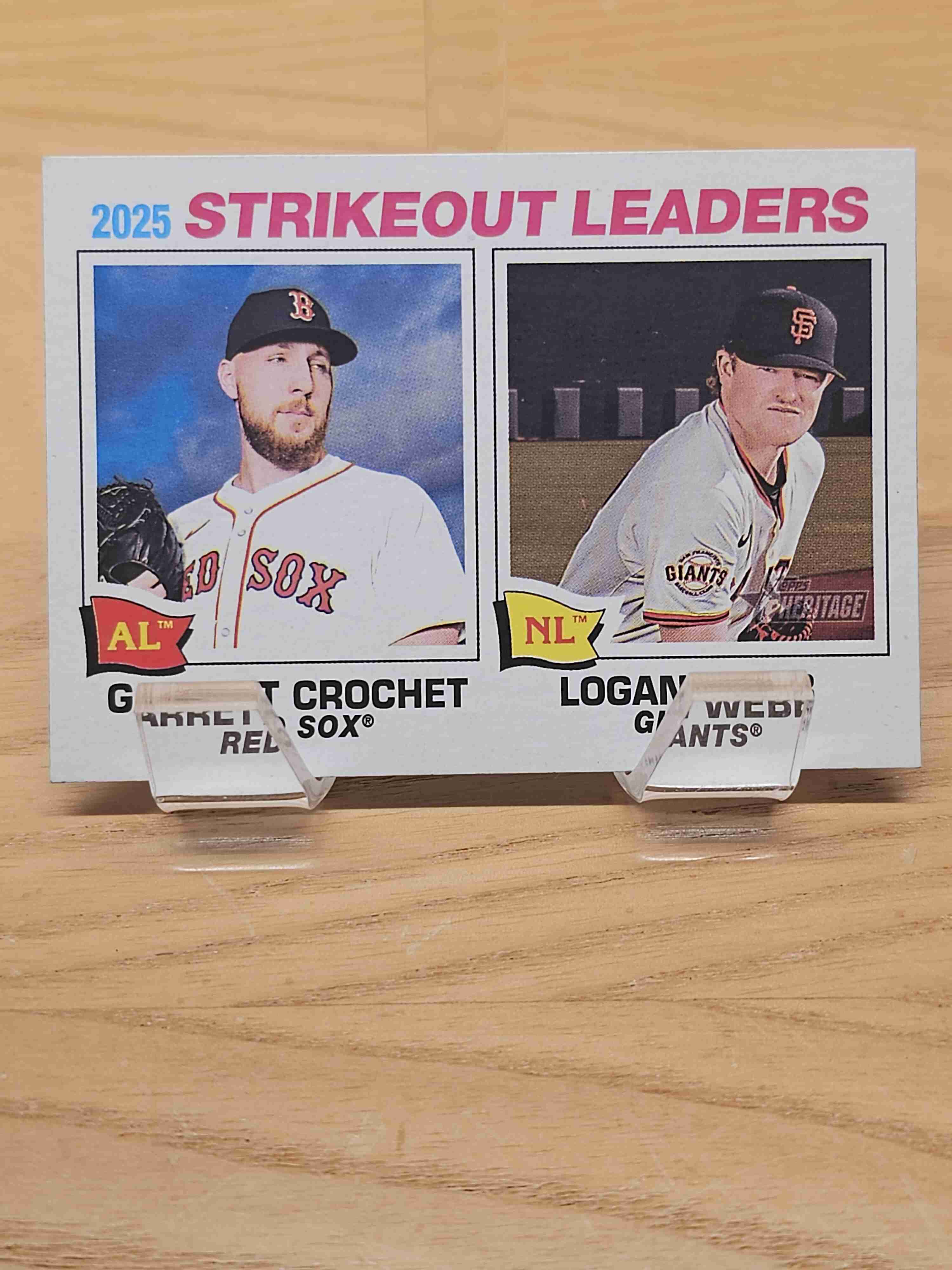 2026 Topps Heritage Baseball 2025 Strikeout Leaders Garrett Crochet Logan Webb Boston Red Sox San Francisco Giants Card #6