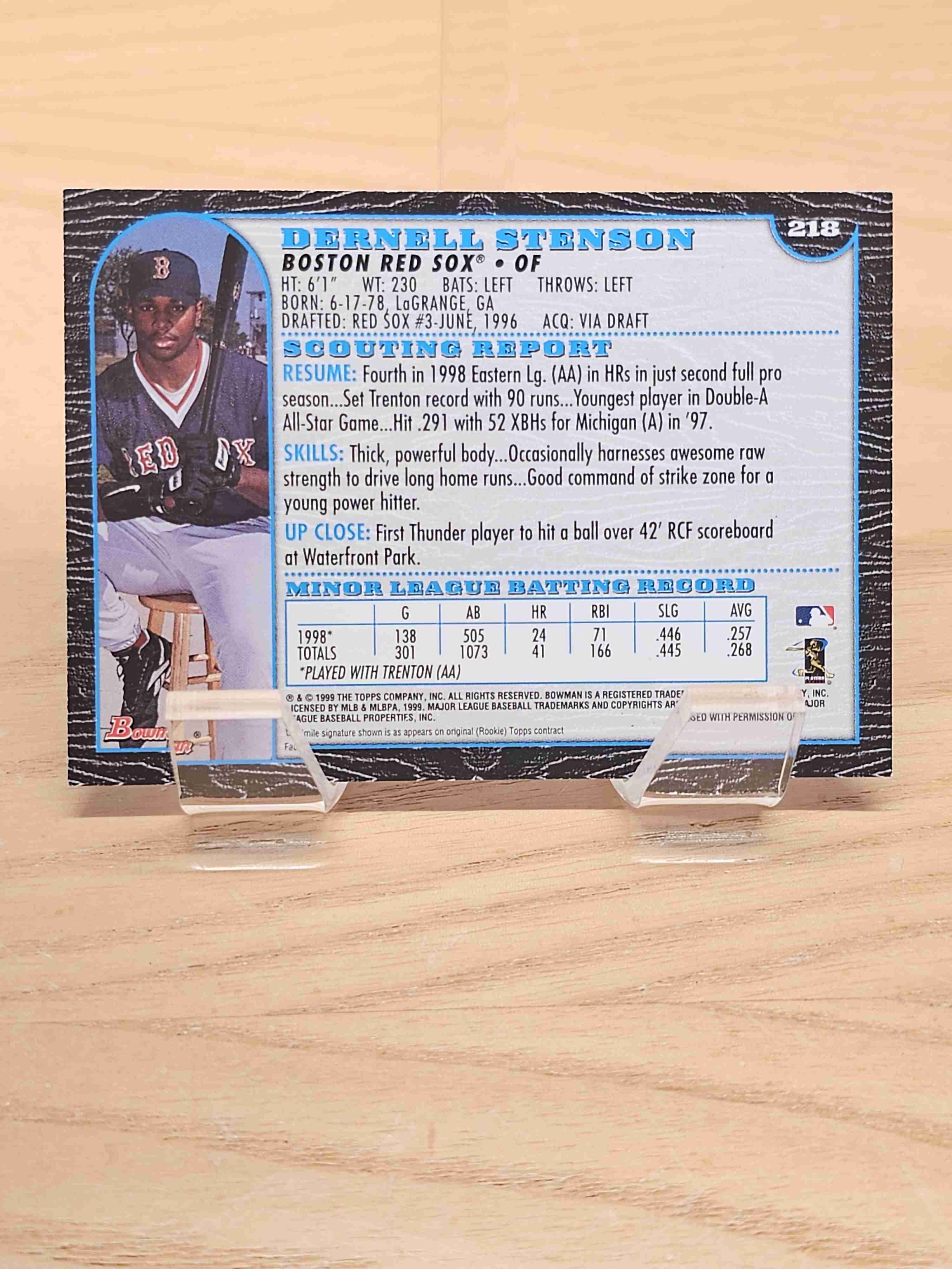 1999 Bowman Baseball Darnell Stenson Boston Red Sox Card #218
