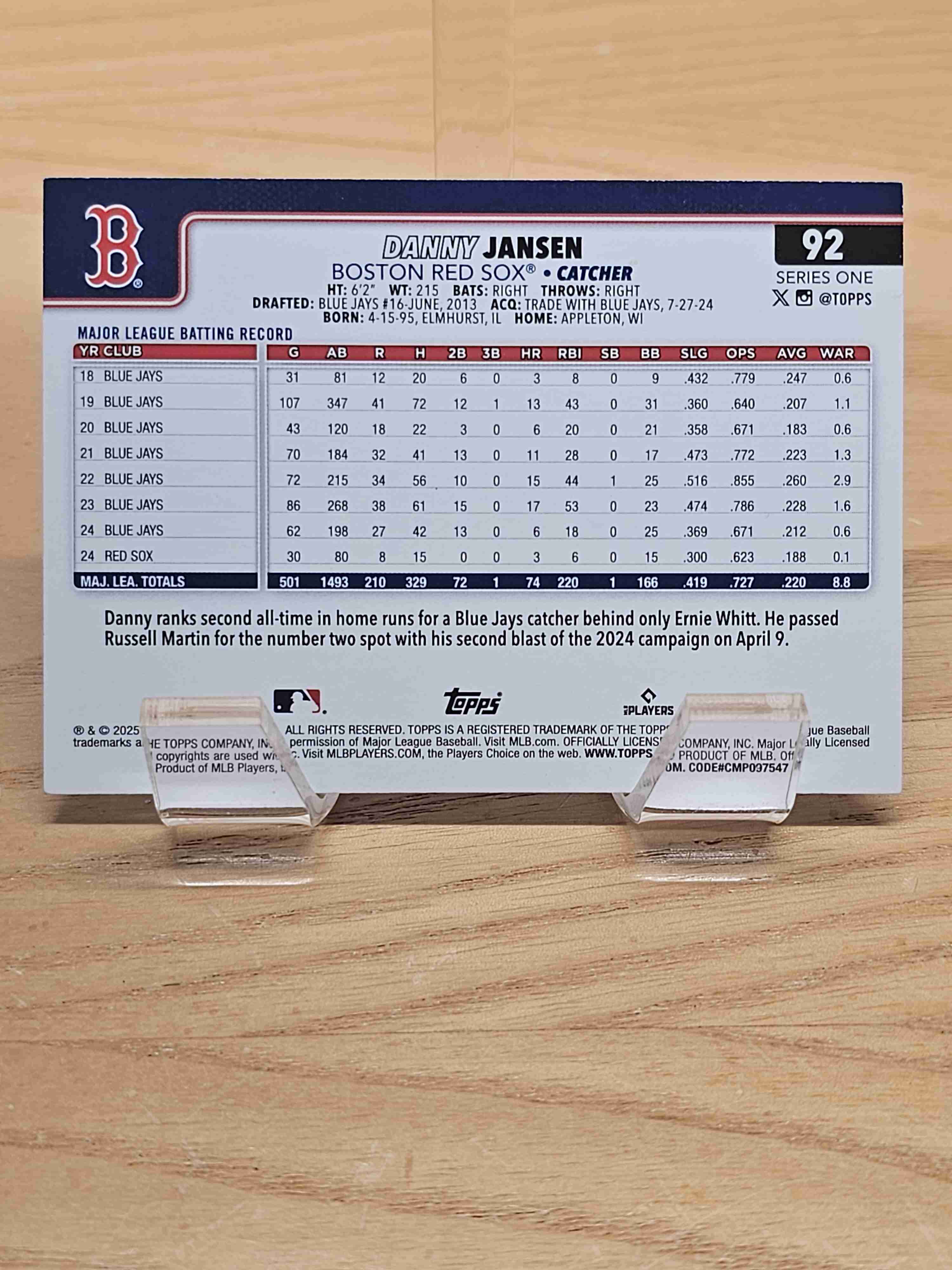 2025 Topps Series One Danny Jansen Boston Red Sox #92