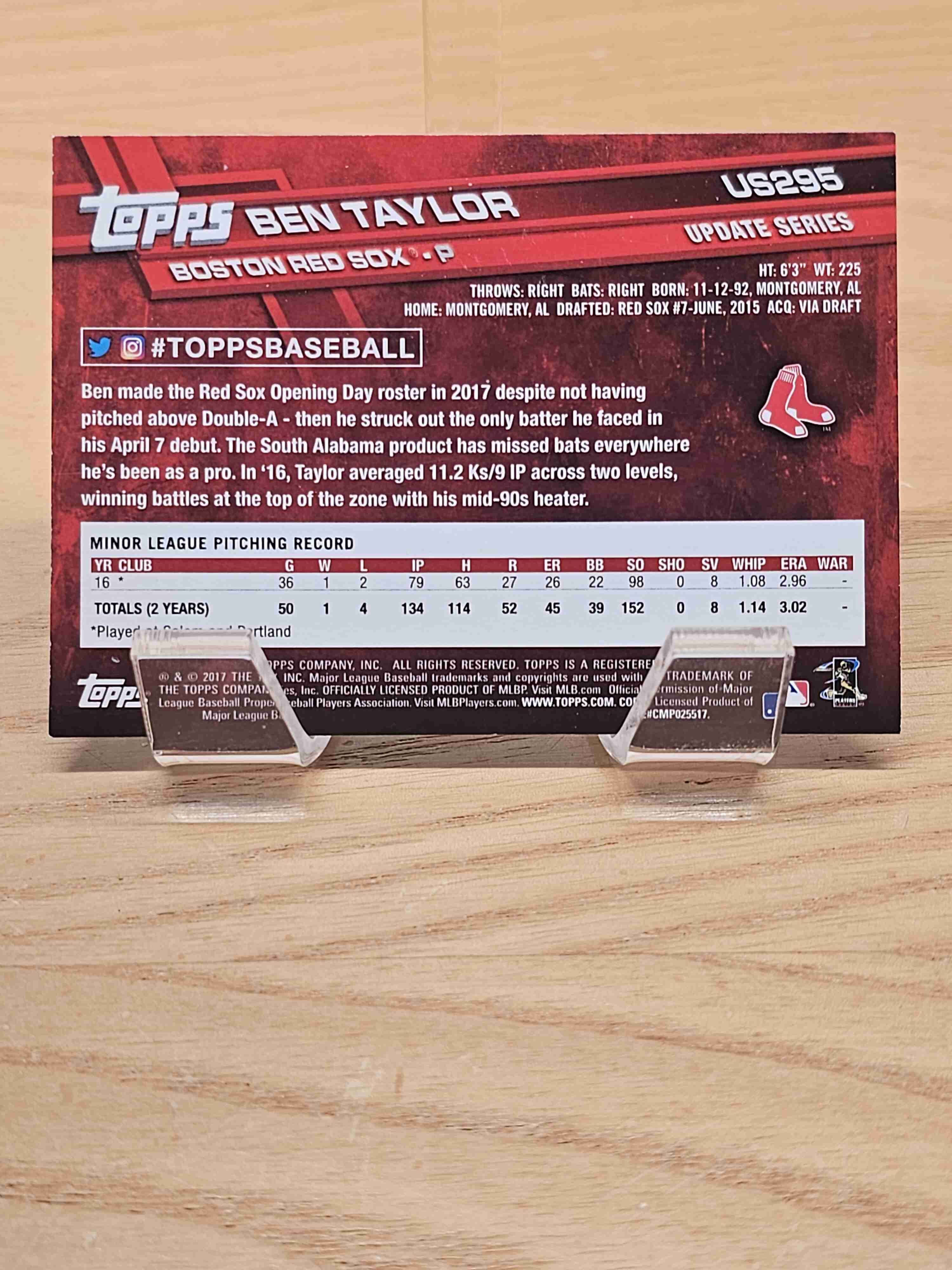 2017 Topps Update Series Baseball Rookie RC Ben Taylor Boston Red Sox Card #US295
