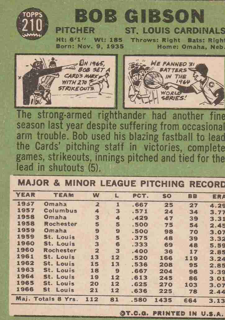 1967 Topps #210 Bob Gibson Cardinals