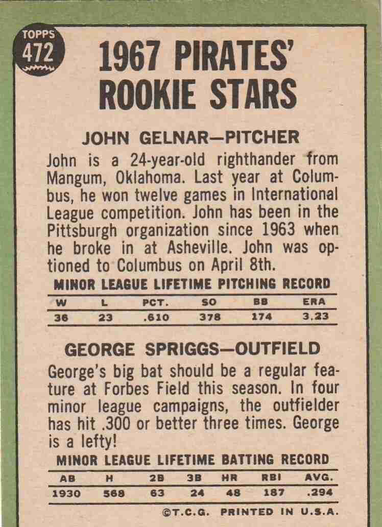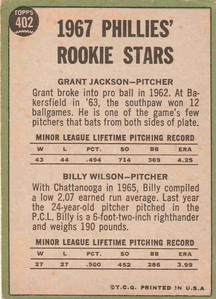 2-1967 Topps Rookie Stars #'s 402 472