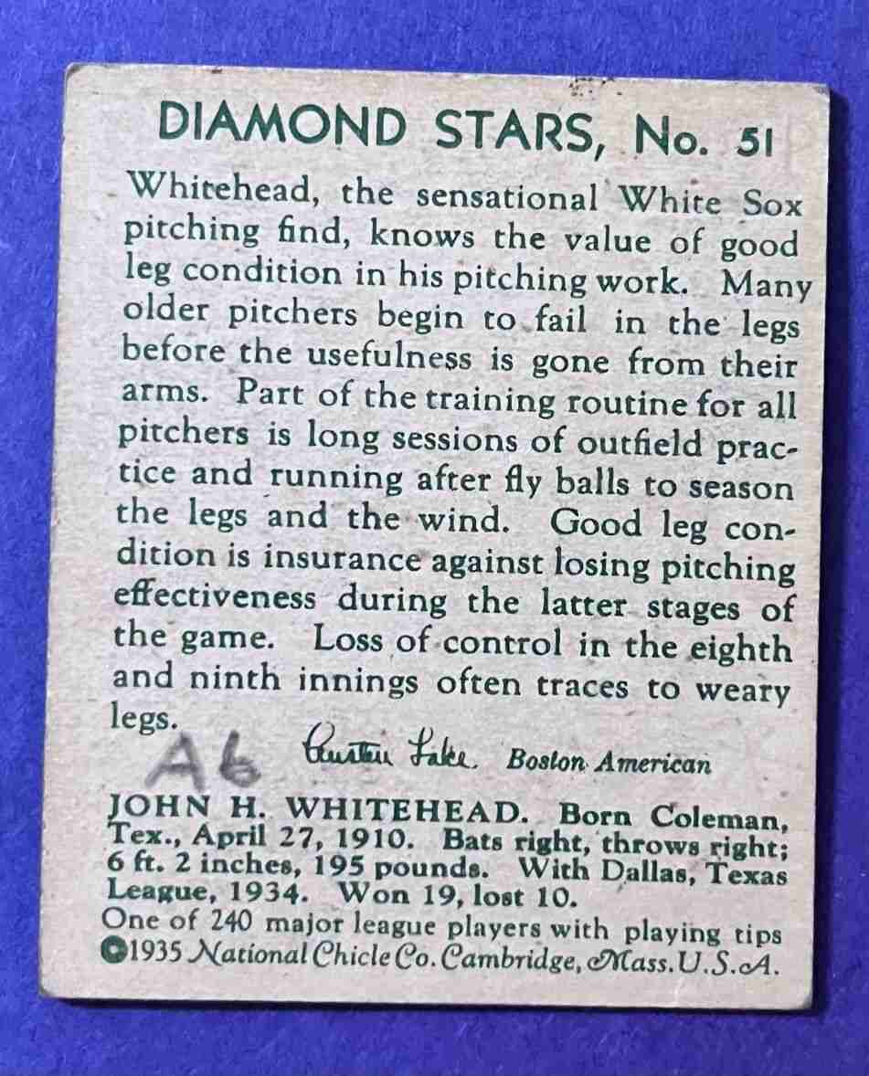 1934-36 DiamondStars JOHN WHITEHEAD #51 +++