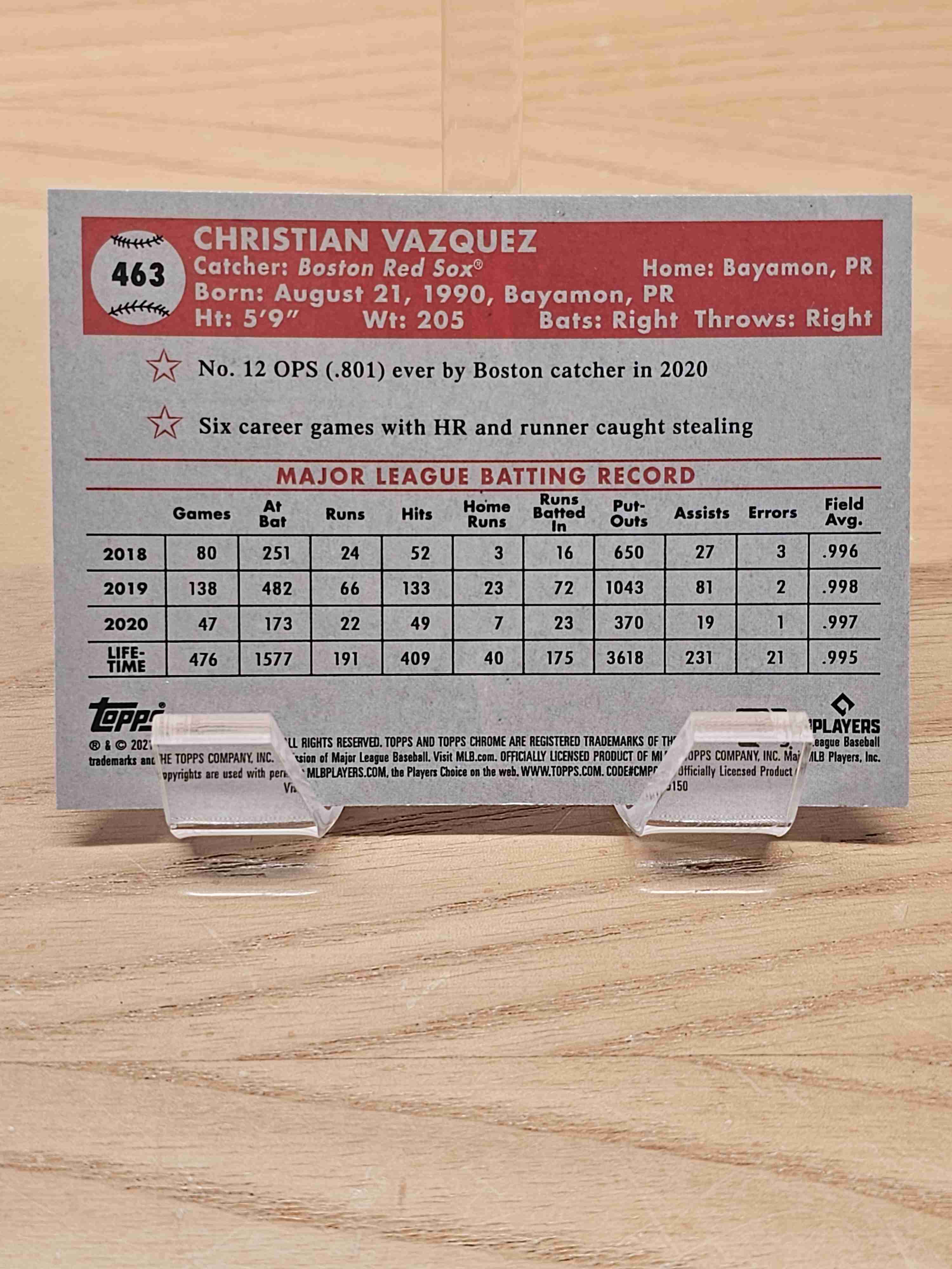 2021 Topps Chrome Platinum Anniversary Baseball Christian Vazquez Boston Red Sox Card #463